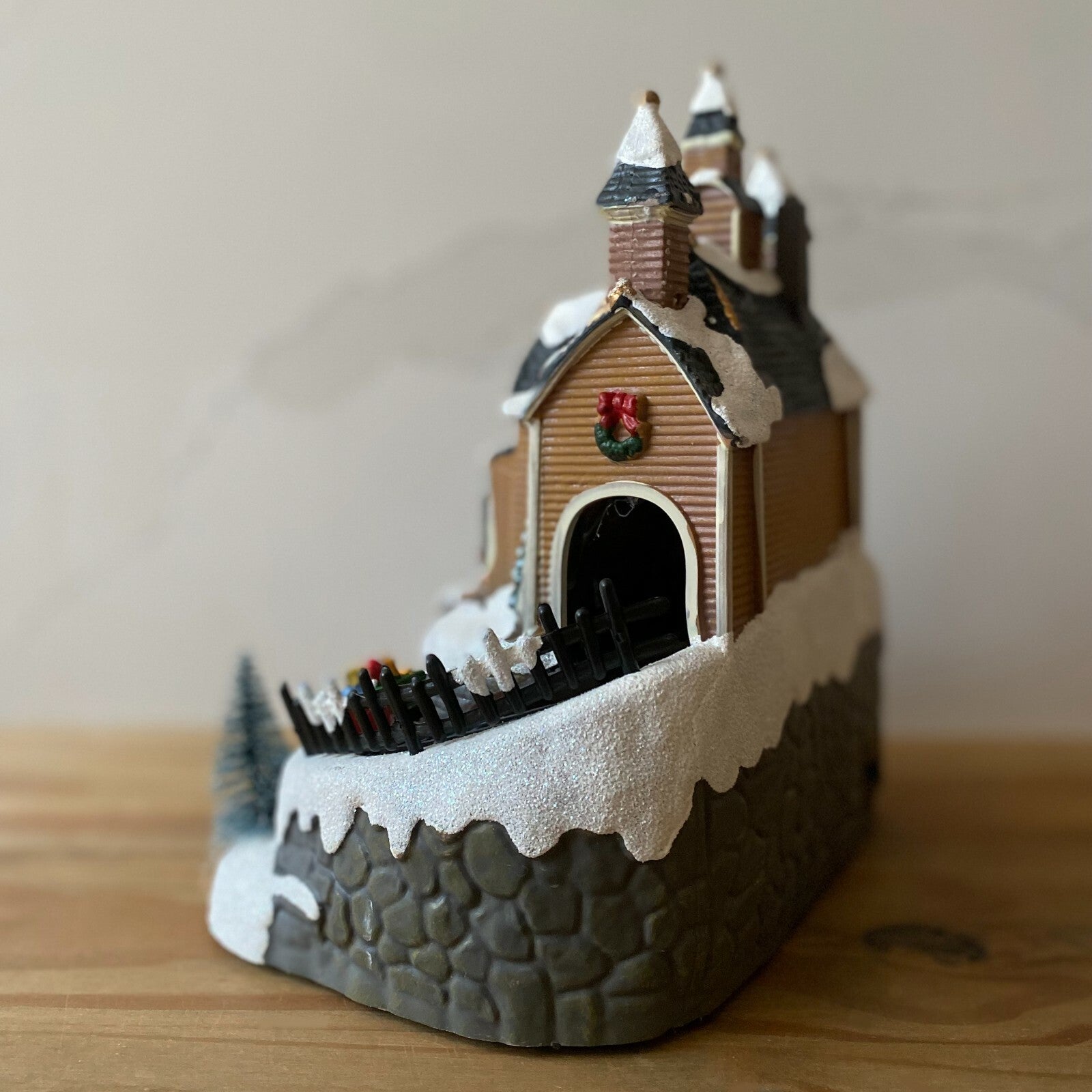 A charming Christmas village scene ornament - a lovely decoration, which features LED lighting and plays festive music.