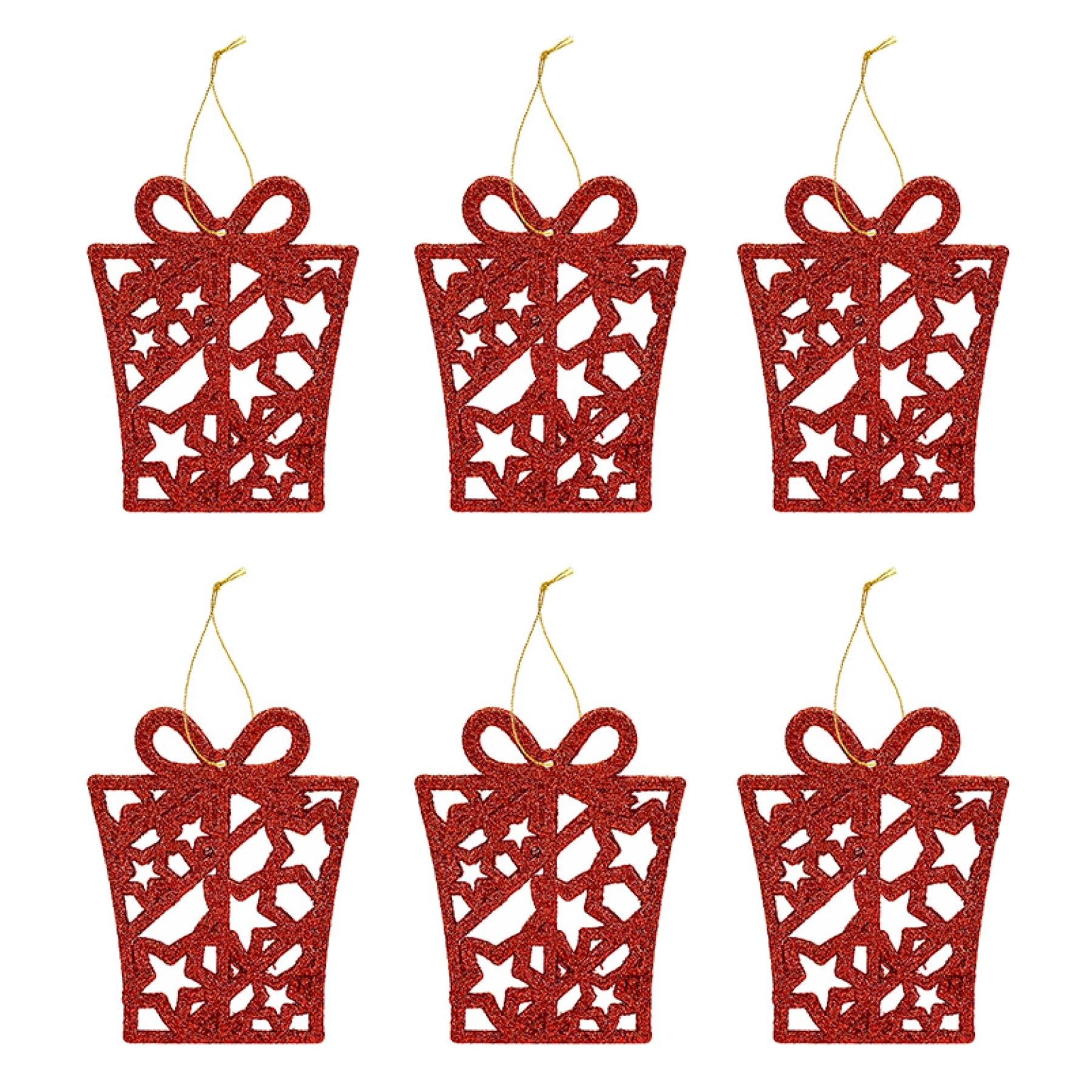 Glitter Christmas Tree Decorations Set of 6 Presents - Red