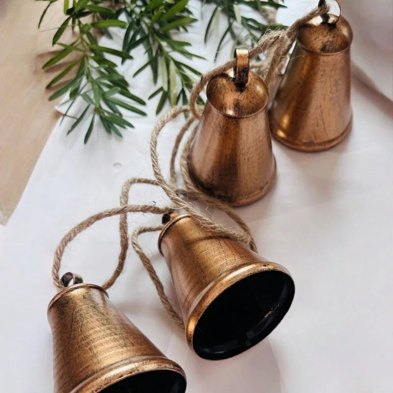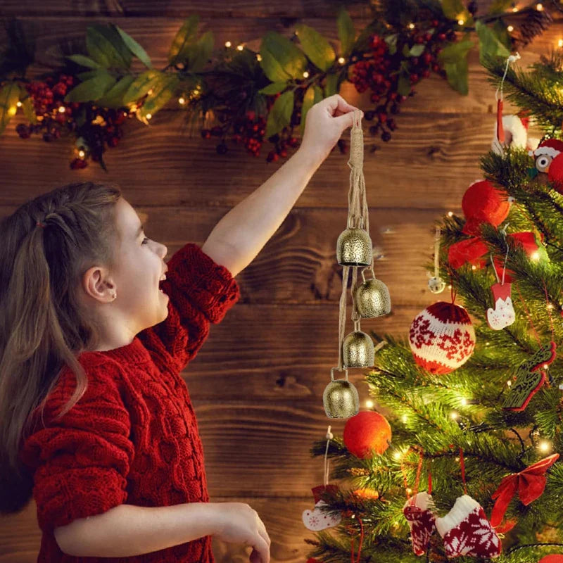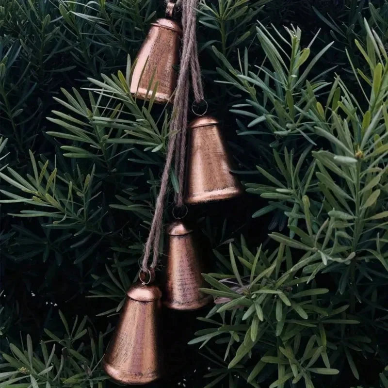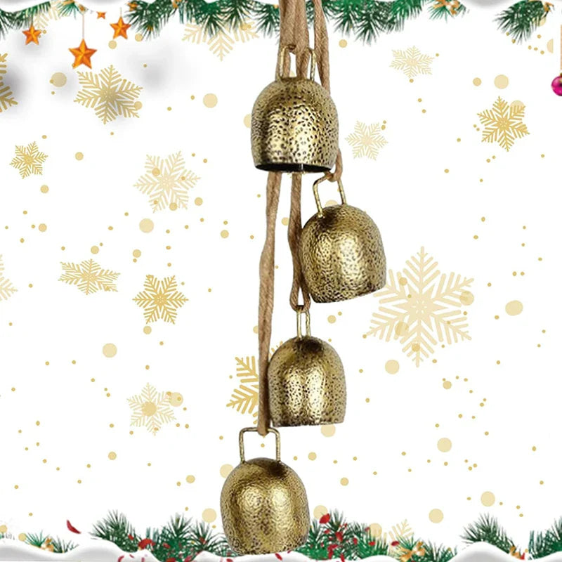 Gold Christmas Bells Vintage 4 Bells Rustic Hanging Cow Bells With Rope Door Garden Yard Pendant Decoration Gold Witch Bells