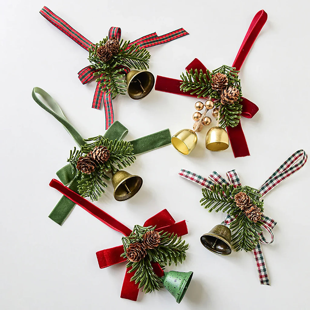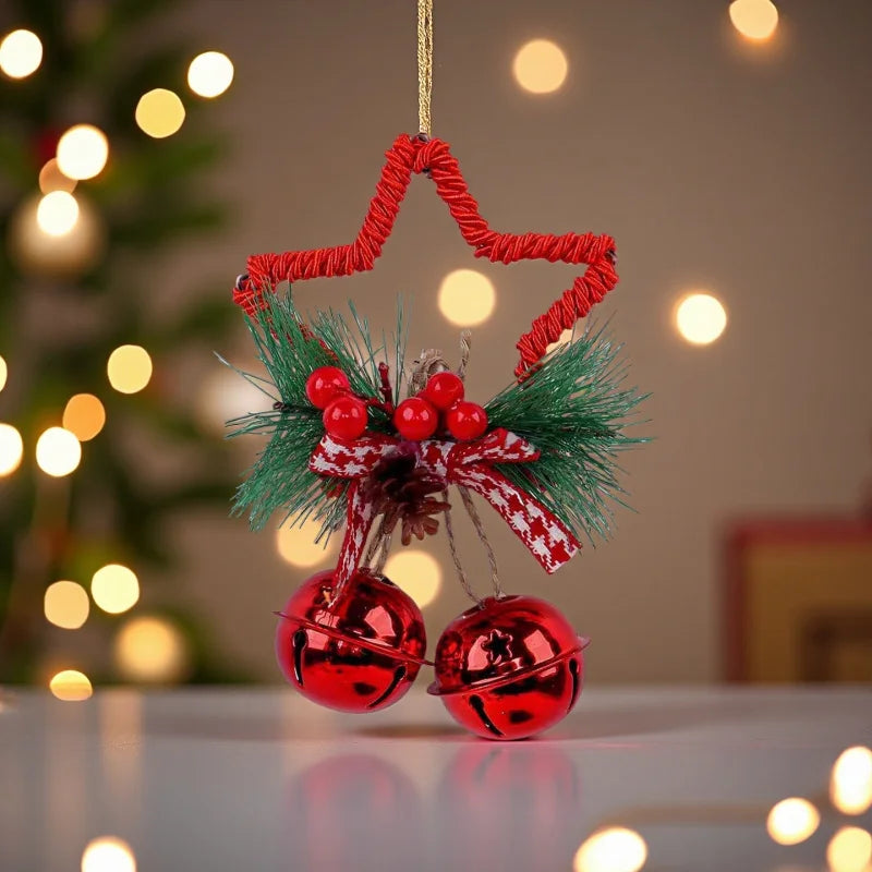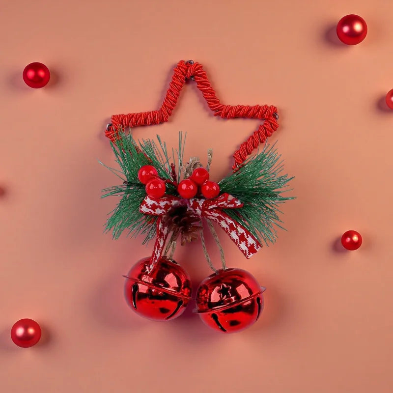 1Red five-pointed star bell Christmas accessory ornament,Bow Pine BerryDIYChristmas Tree Ornaments,Suitable for Christmas party
