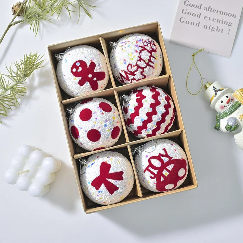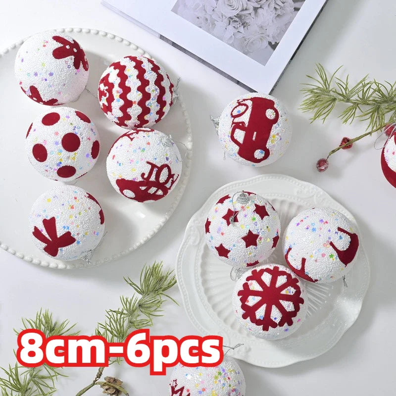 2025 New 8CM-6pcs Foam Christmas Ball Ornaments Cartoon Candy Christmas Tree Party Decoration Set Christmas Spheres Pendant