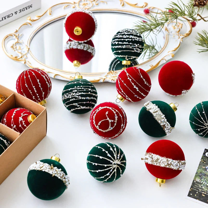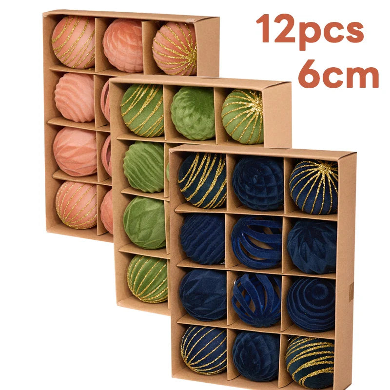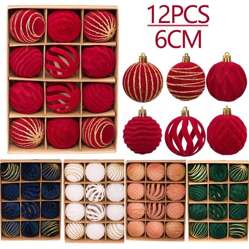 6/12pcs Velvet Christmas Tree Hanging Balls 6cm Flocked Ball Set Break-Resistant Ornaments for Home Holiday Wedding Party Decor