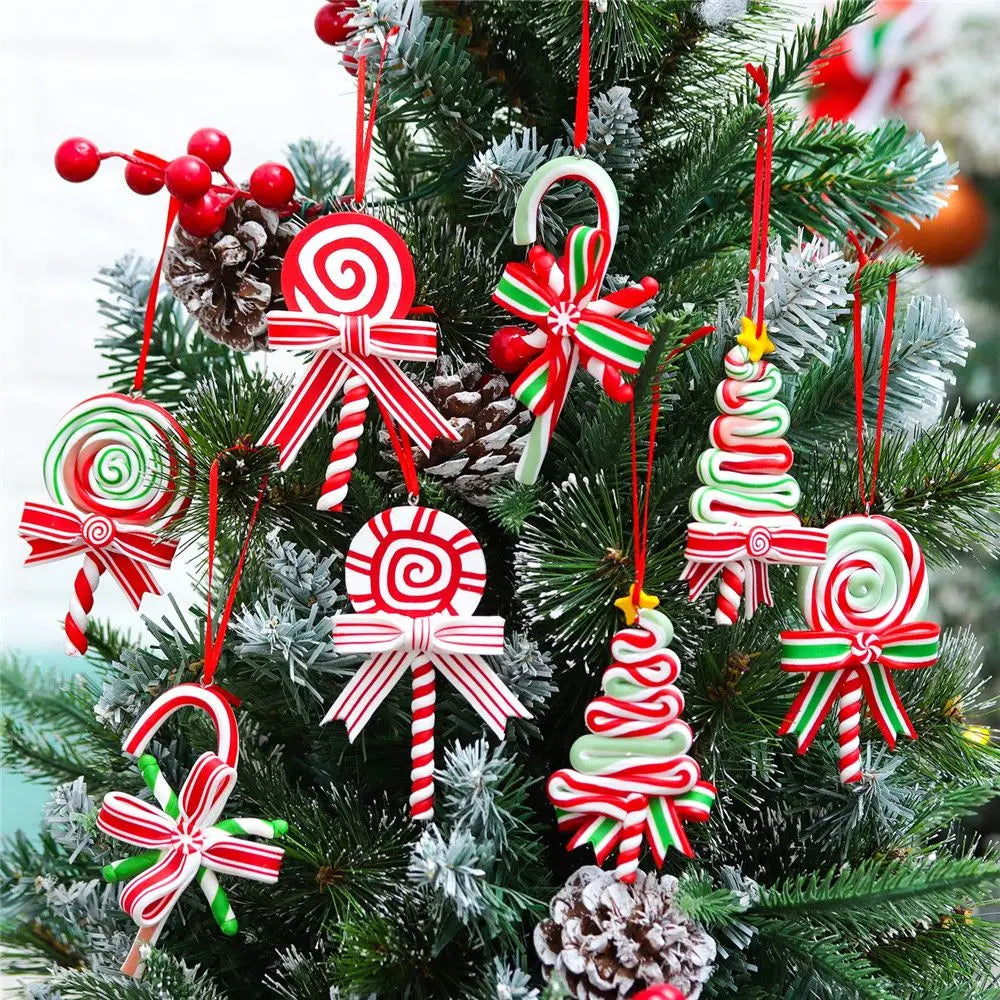 Christmas Candy Ornament Lollipop Xmas Decor Candy Cane Hanging Decoration Canes Crafts for Xmas Wreath Xmas Tree Party Supplies