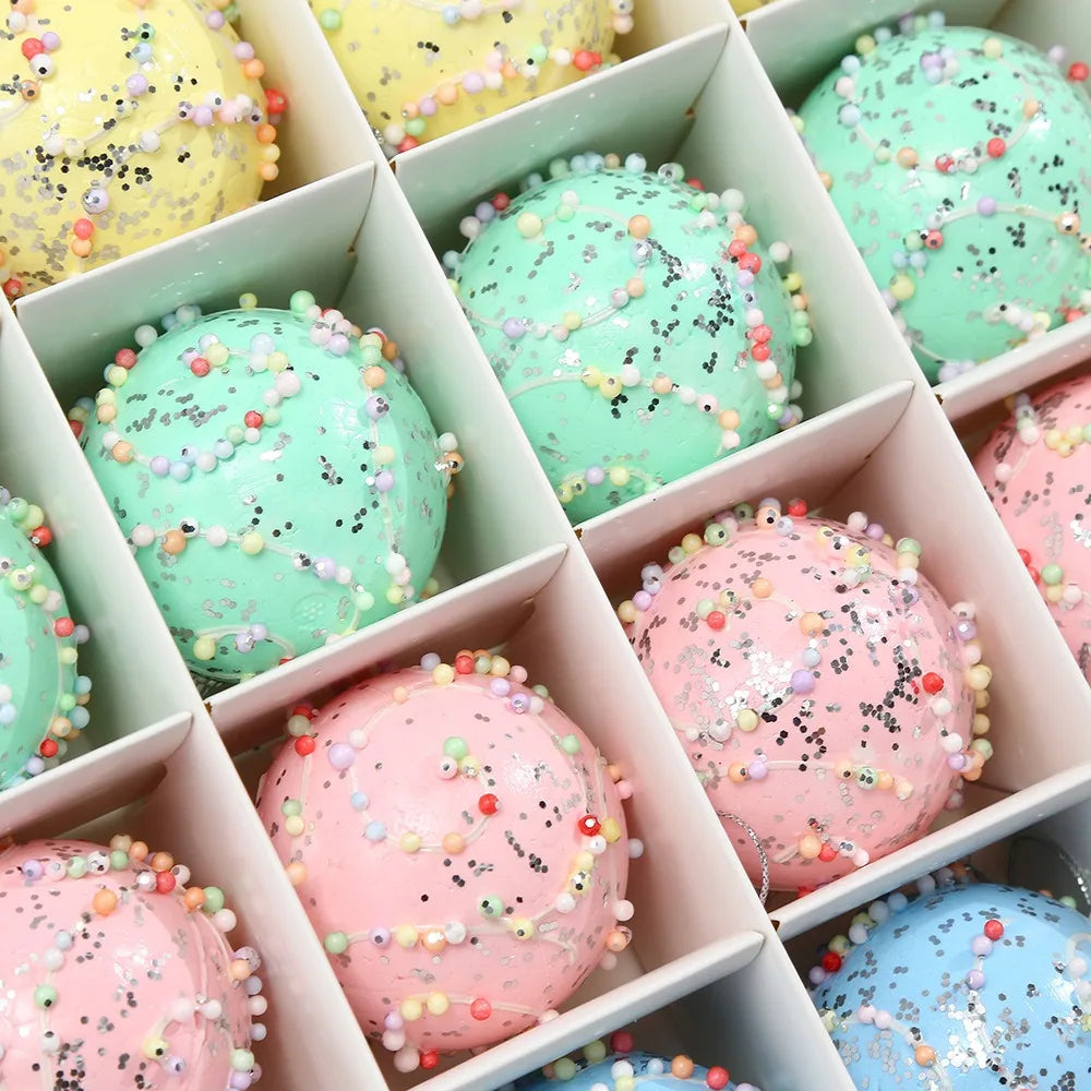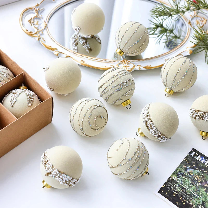 8/6CM-9/12PCS FlockingChristmas Balls Decoration Glitter Xmas Decorative Hanging Ornaments Christmas Spheres Pendant Set