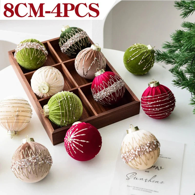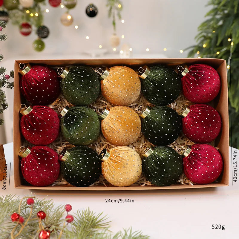 12/15pcs 8cm Christmas Balls Luxury Xmas Decorative Hanging Ornaments Party Star Embellished Velvet Christmas Spheres Pendant