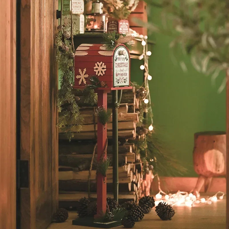 Nordic Vintage Wood Landing Post Box Christmas Decoration Letter Box Shopping Mall Restaurant Indoor Window Christmas Post Box