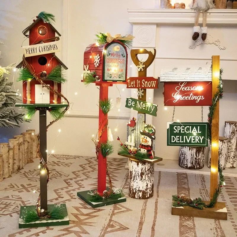 Christmas Wooden Mailbox Bird House Cabin Ornaments Hotel Window Holiday Atmosphere Ornaments Merry Christmas Sign Navidad 2023