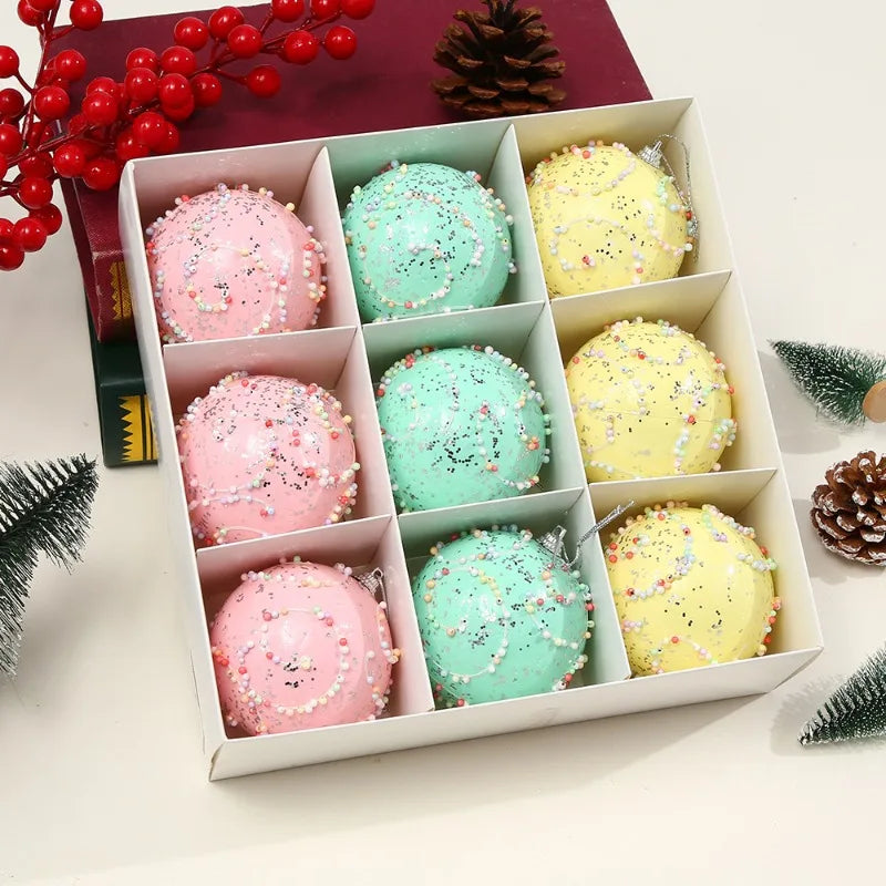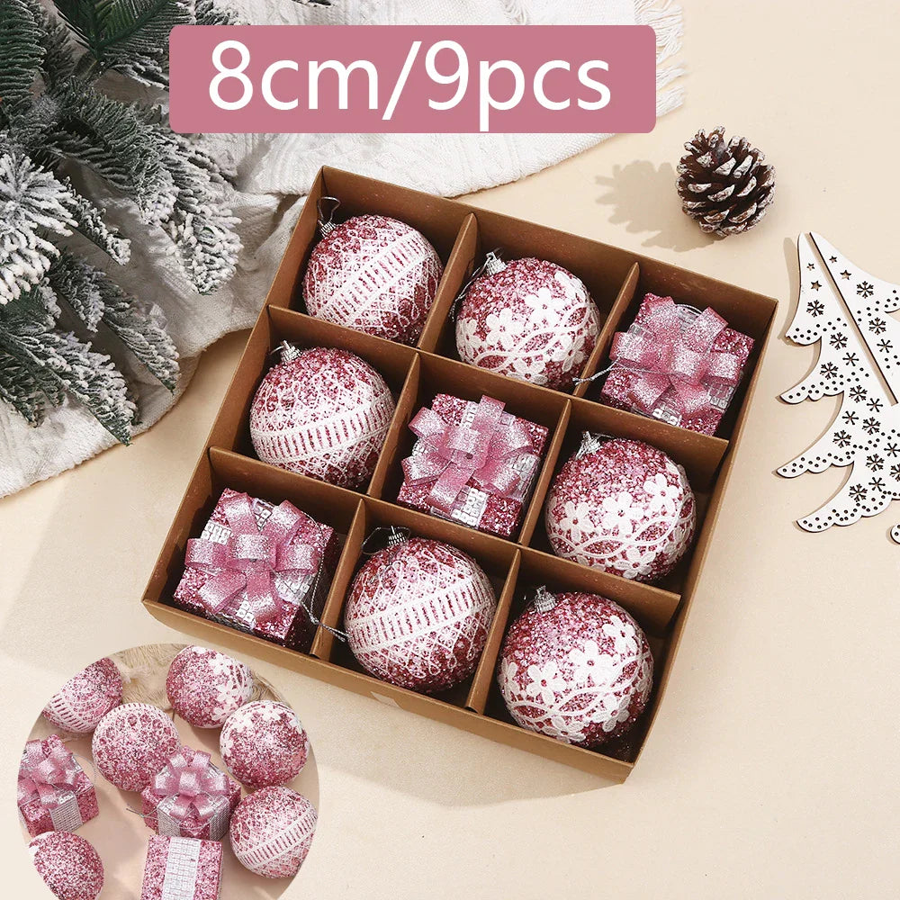 9Pcs 8cm Christmas Balls Foam Painted Xmas Decorative Hanging Ornaments Christmas Spheres Pendant 2025 New