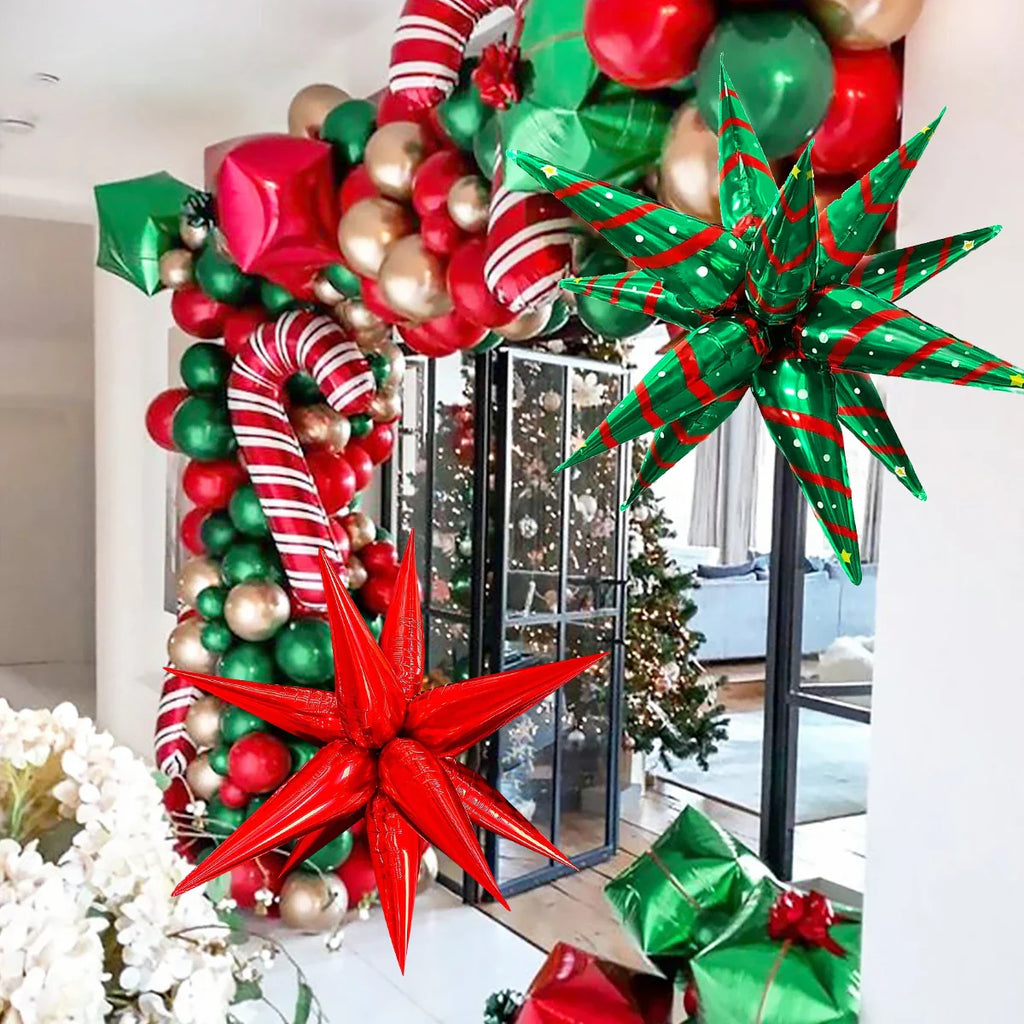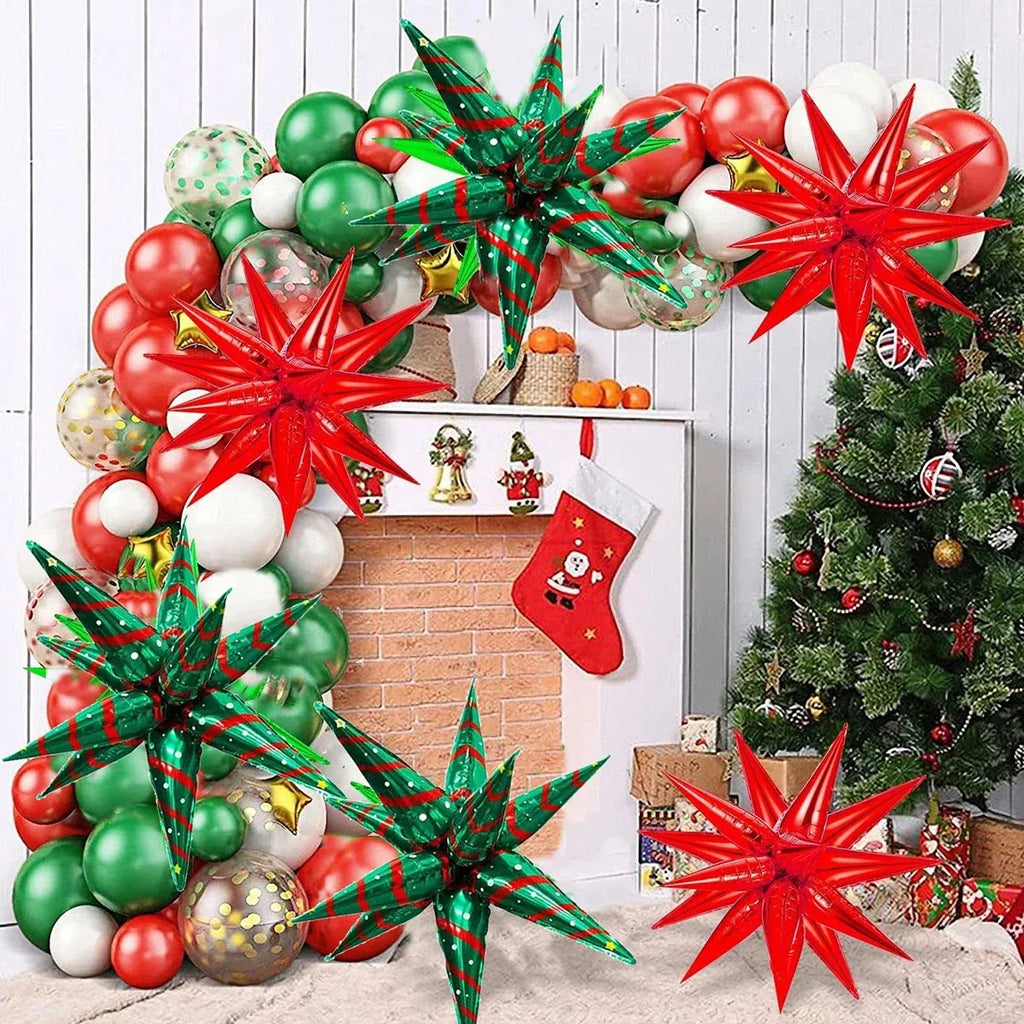 16pcs/2set Christmas theme red and green exploding star balloons, suitable for Christmas decoration, can be hung