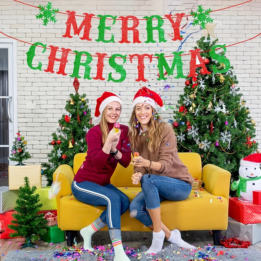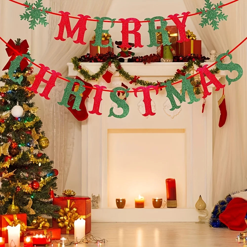1pc Festive Red and Green Snowflake Christmas Banner - For Holiday Party Decorations Paper Material Christmas Decorations