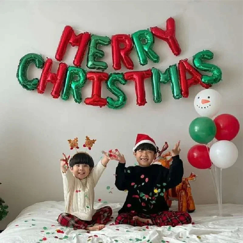 14pcs Merry Christmas Decoration Balloon Backdrop Christmas Decor Hanging Letter Globos Xmas Ornament Party Supplies Kids Gifts