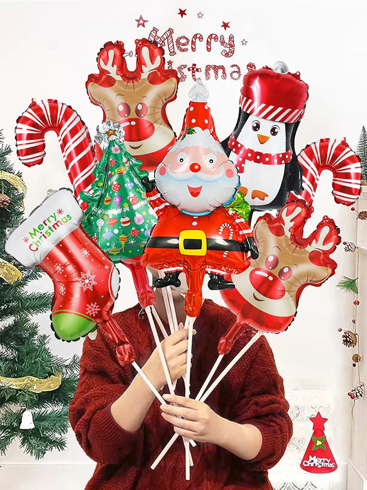 6pcs Christmas Balloon Set with Santa Claus, Tree, Deer and Christmas Candy Canes, Christmas, Photo Props, Christmas Gifts
