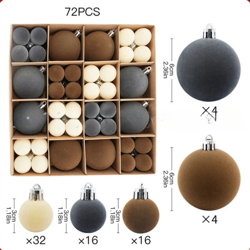 44/49/72Pcs 3/6CM Plush Christmas Balls Flocking Xmas Decorative Hanging Ornaments Christmas Spheres Pendant 2025