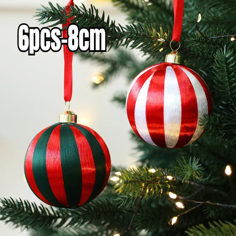 8cm-6pcs Winding Christmas Ball Ornaments Foam Red White Christmas Tree Party Decoration Set Christmas Spheres Pendant 2025 New