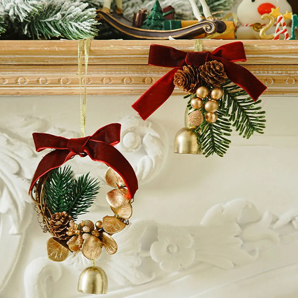 Bells Pendant Xmas Tree Small Hanging Ornaments Stylish Velvets Bowknot Pinecone For Festive Party Family Winter Display Door