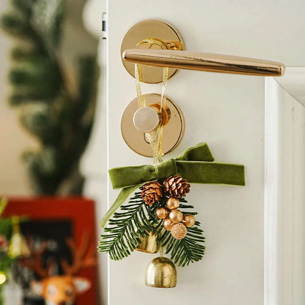 Luxury Christmas Door Decor, Jingle Bells Hanger with Velvet Bow and Pine Cones, Classic Noel Gift Idea 2025