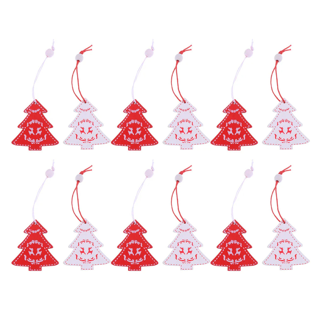 12 Pcs Christmas Tree Pendant Hanging Ornament Boxed Wooden Decor for Miniature
