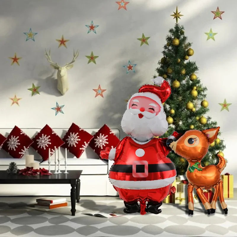 (1Pc) Christmas Party Decoration Props Photo Props Toy Large Balloon 4D Standing Santa Claus Reindeer Christmas Tree Shaped Cartoon Creative Aluminum Foil Balloon