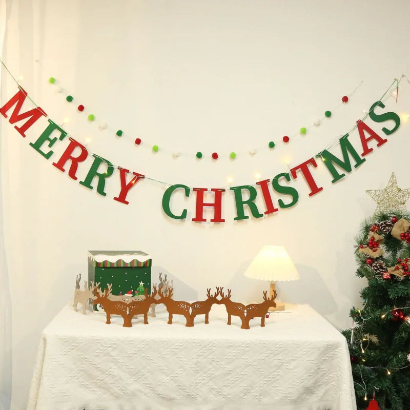 Christmas Atmosphere Decoration Christmas Felt Pull Flag, Festive Holiday Decor, Perfect for Home & Office, Easy Setup