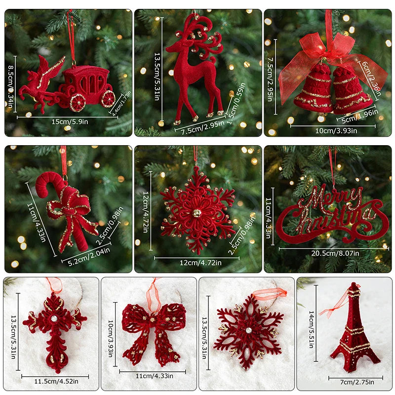 Exquisite Christmas Red Velvet Bow Snowflak Elk Bell Pendant Christmas Tree Hanging Ornament 2026 New Year Party Home Decoration