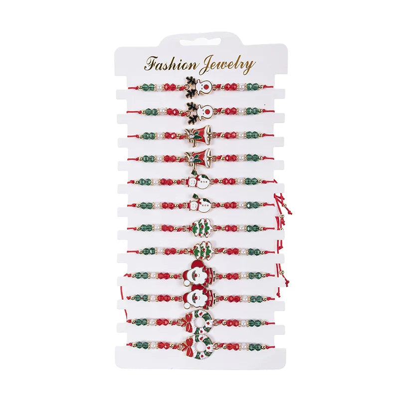 12PCS/SET Christmas Charm Bracelet Set Santa Claus Snowman Bells Elk Snowflake Rope Adjustable Bracelet for Women New Year Gift