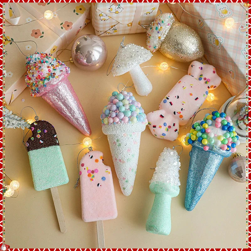 Christmas Pendant Creative Ice Cream Model Christmas Decoration Pendant Lovely Dessert Prop Christmas Tree Decoration Pendants