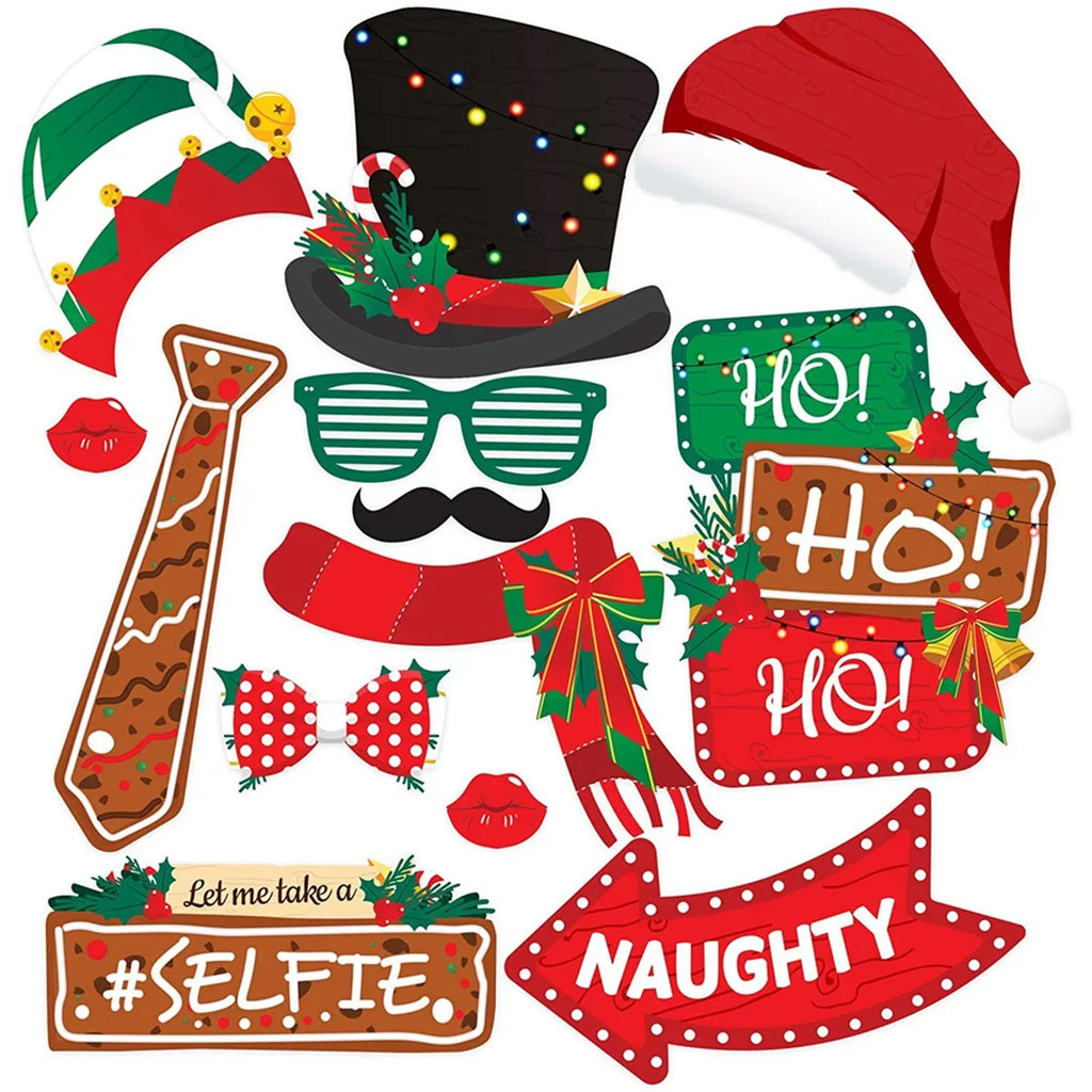 38pcs Christmas Photo Props Santa Claus Snowman Masks Lips Beard Photo Props New Year Xmas Party Decoration Noel Navidad Gifts