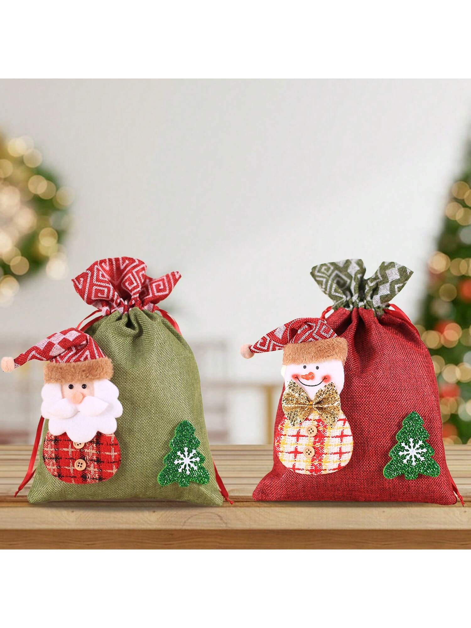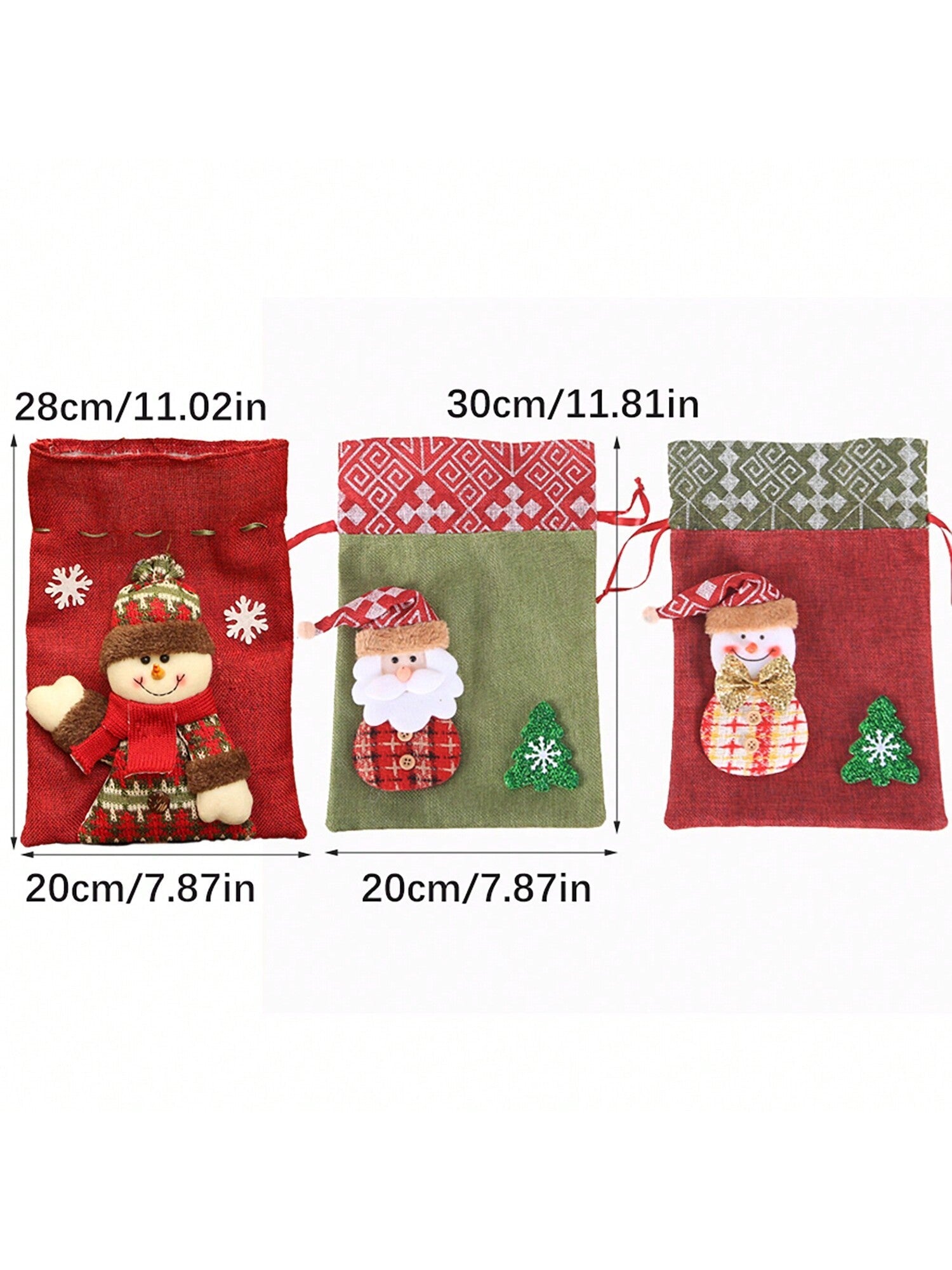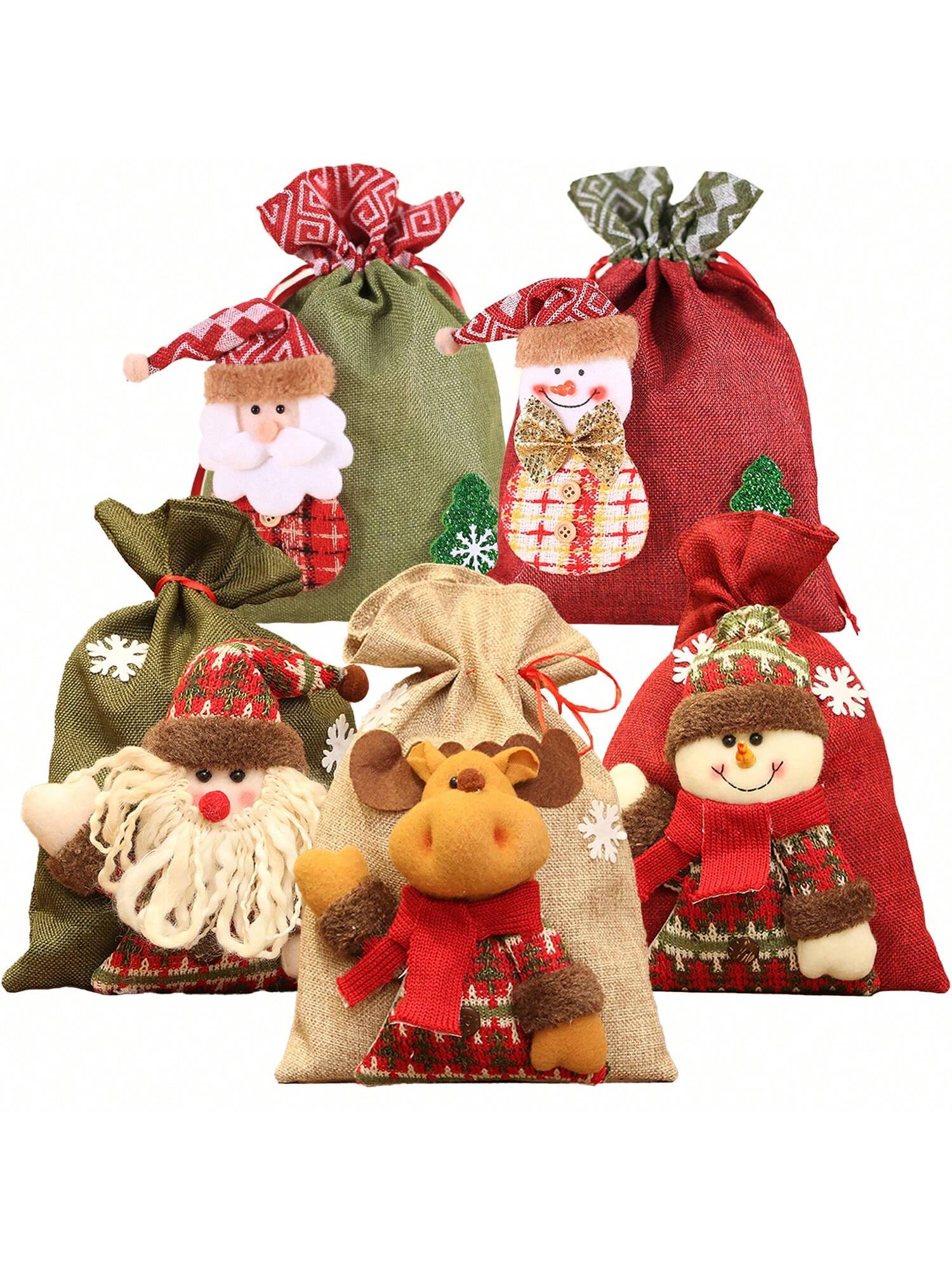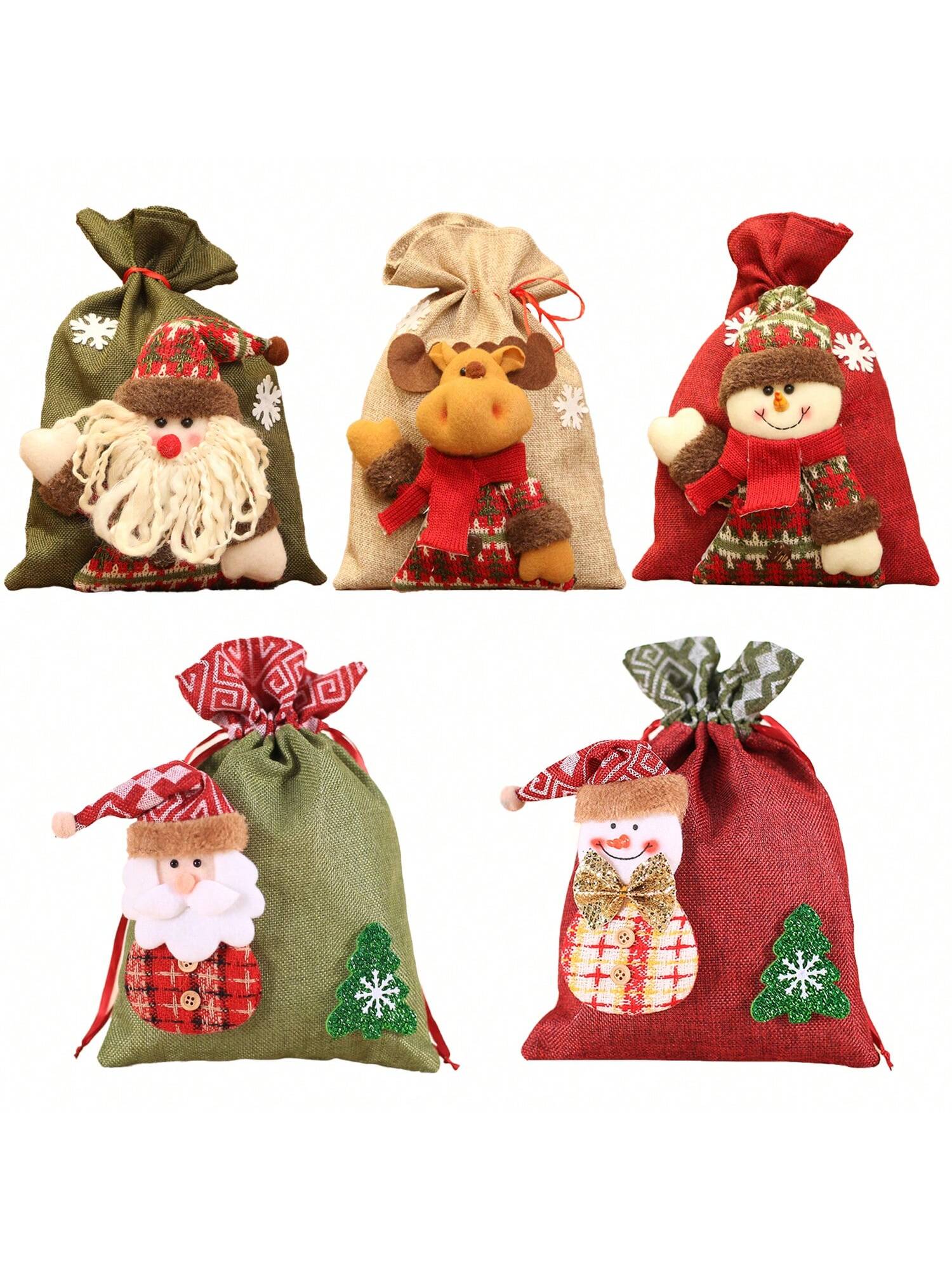 5pcs/Set Christmas Fabric Cartoon Characters Gift Pouches