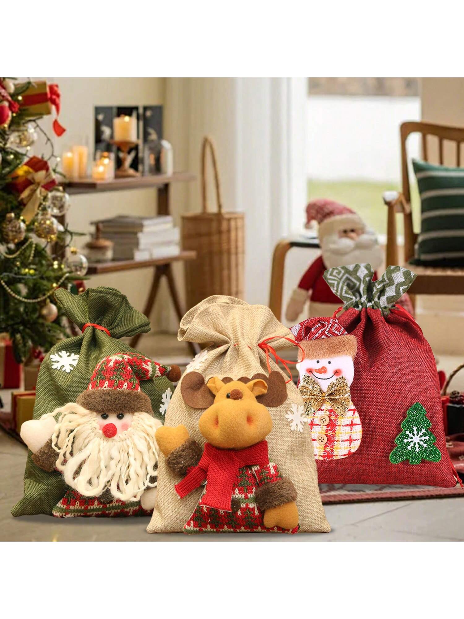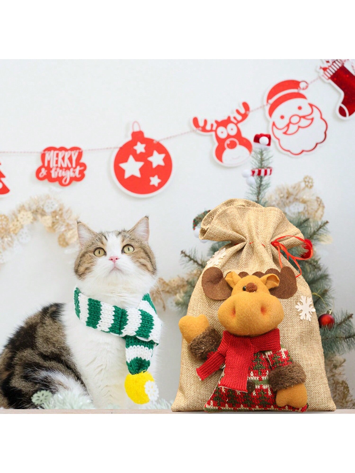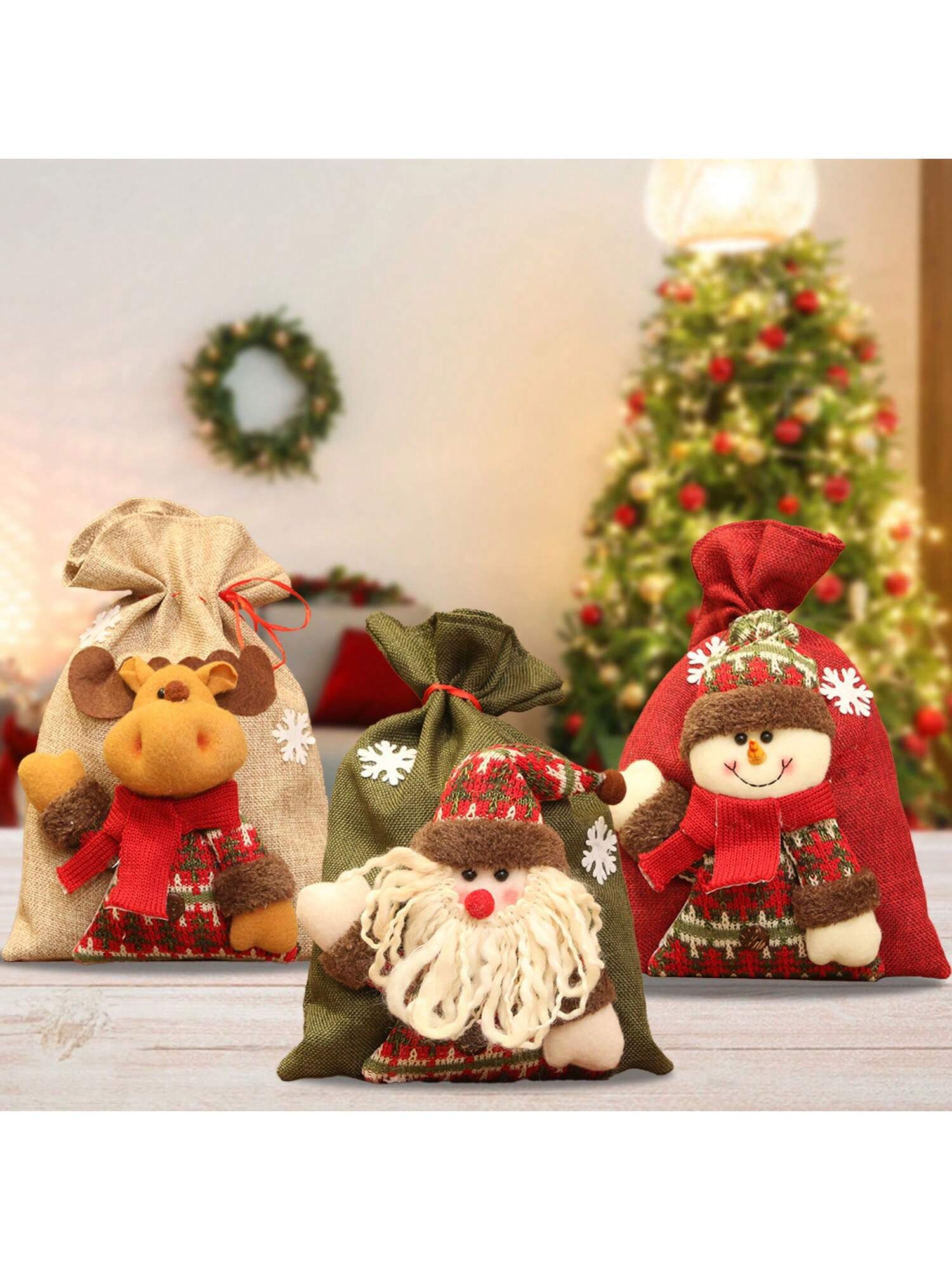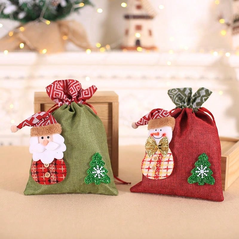 5pcs/Set Christmas Fabric Cartoon Characters Gift Pouches