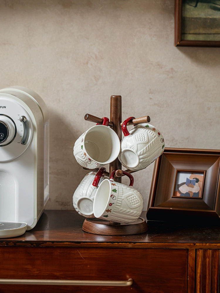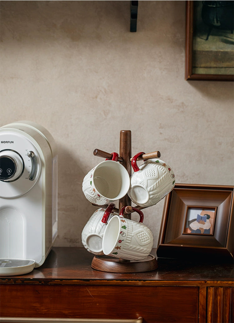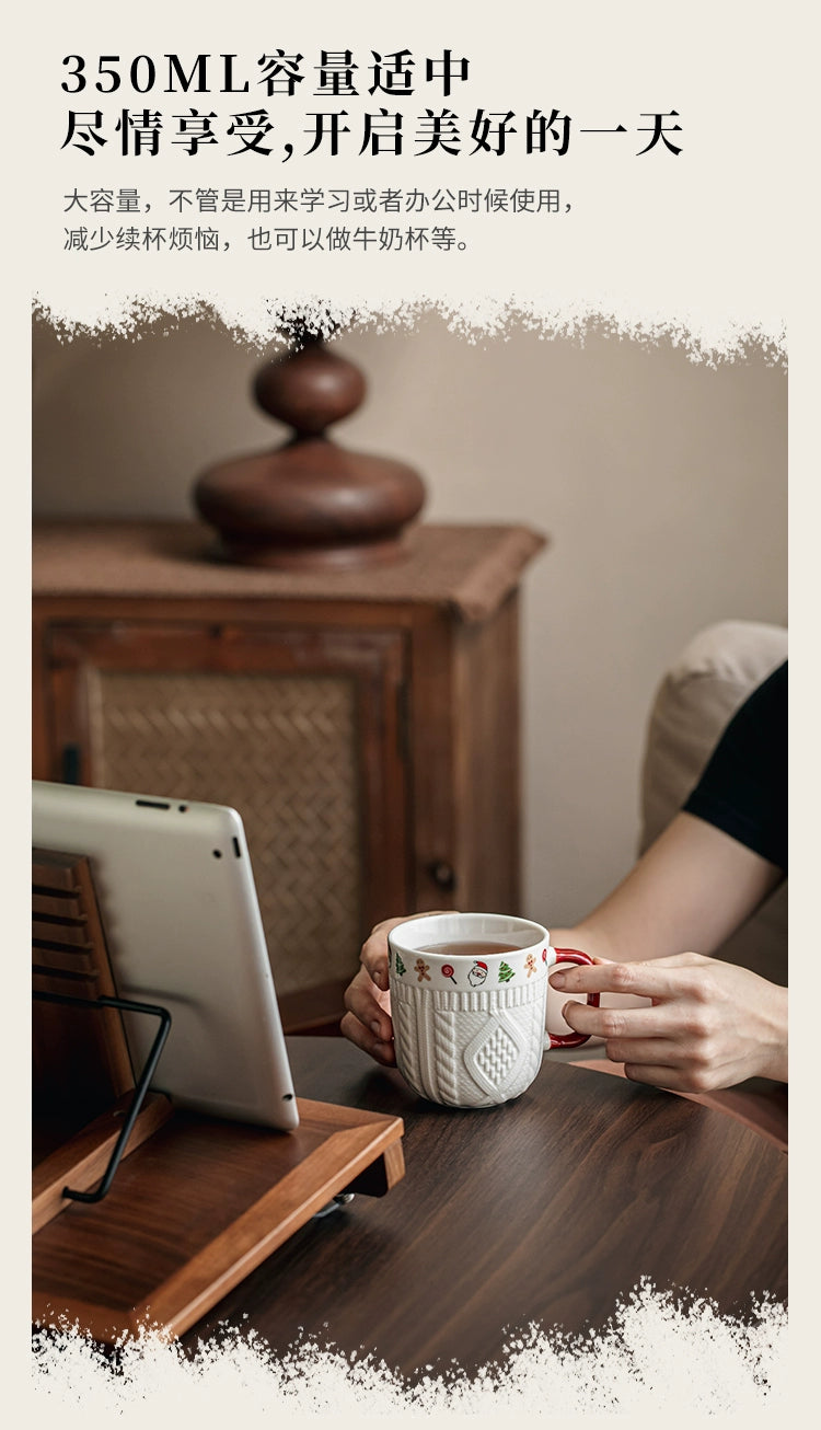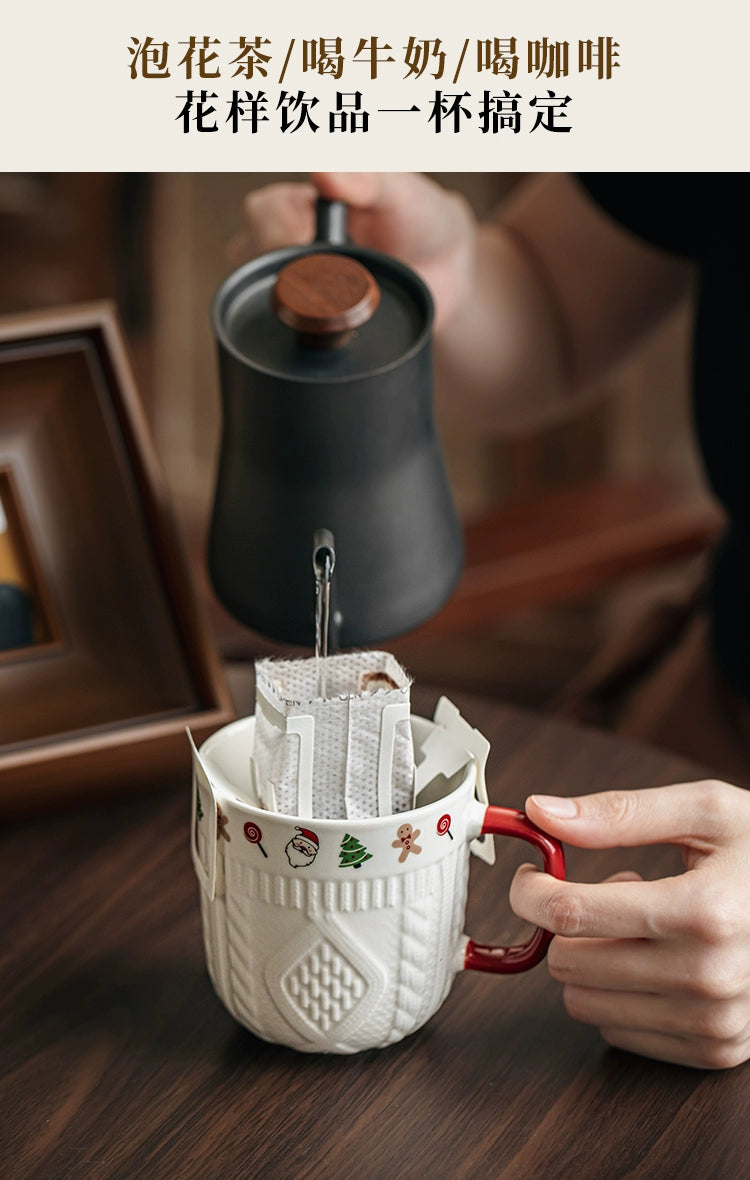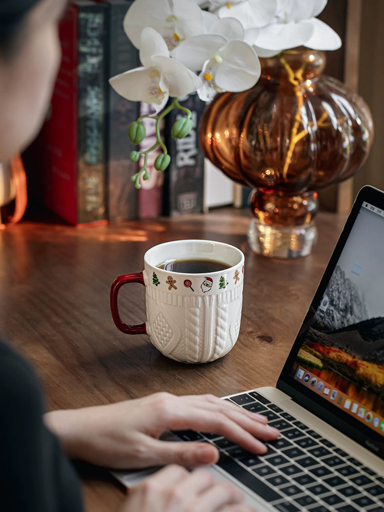 Beautiful embossed Christmas cup ceramic mug set - Christmas Sweater Cups - Red Pair is backordered and will ship as soon as it is back in stock.