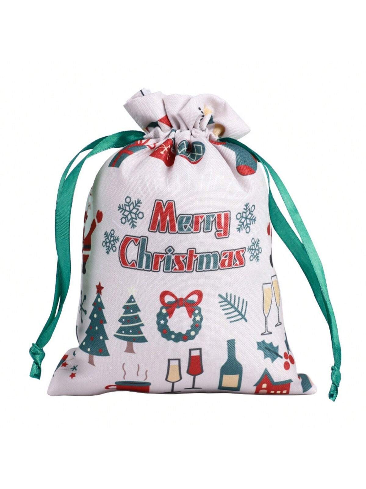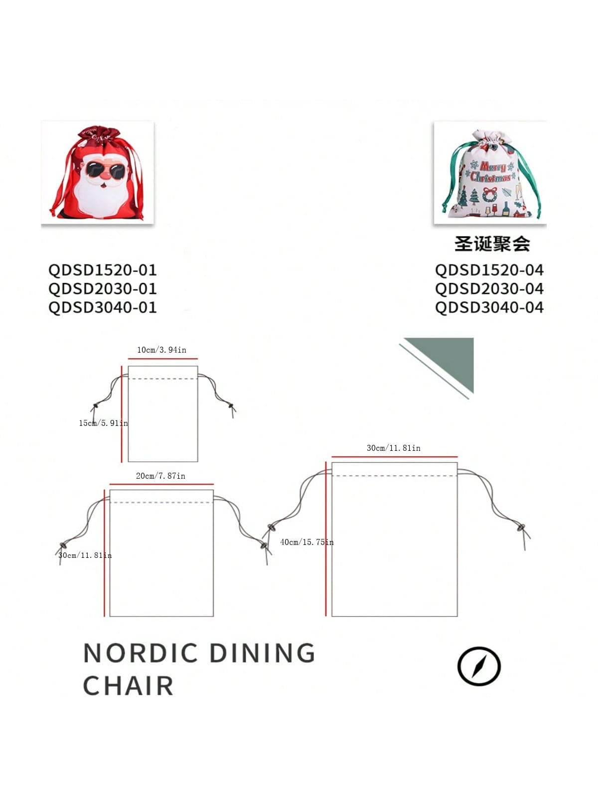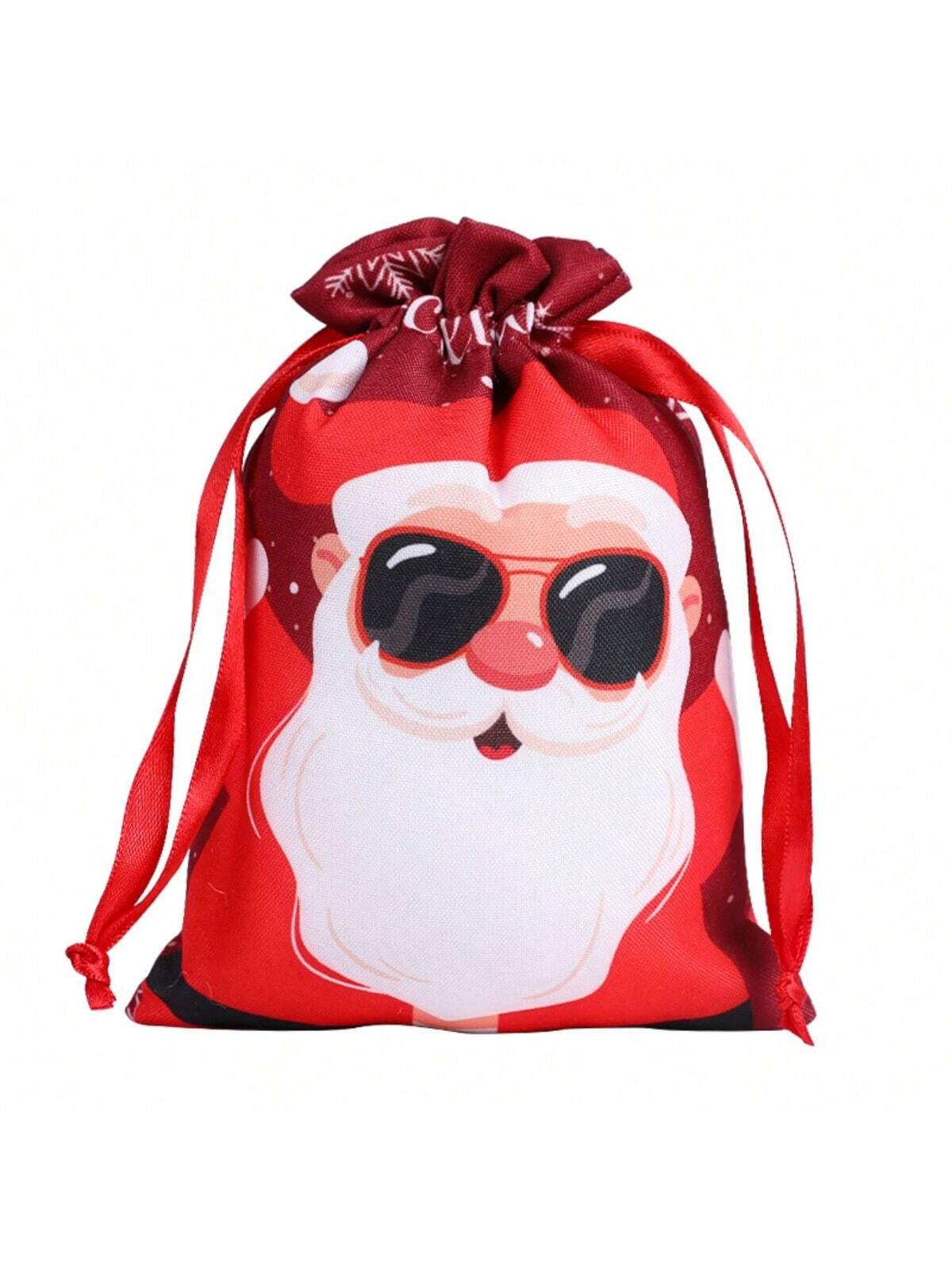 Christmas 100% Cotton Gift Bag Set, Santa Claus Drawstring Party Favor Pouches