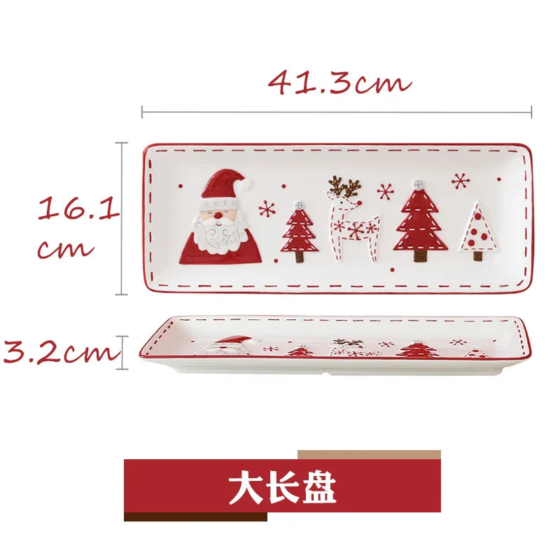 Christmas Hand-painted Ceramic Tableware Set Cute Christmas Steak Plate Embossed Underglaze Color Flat Plate Fish Plate