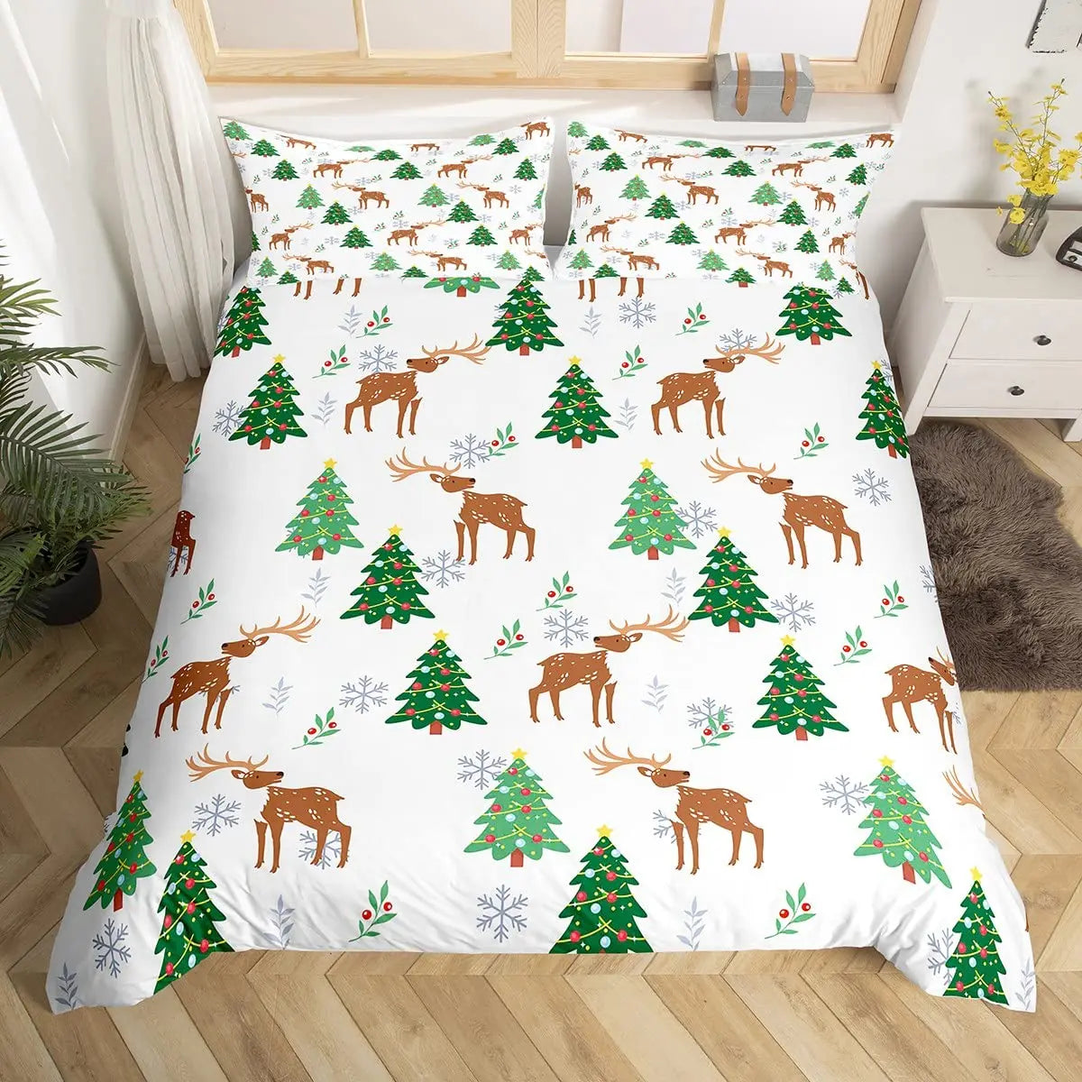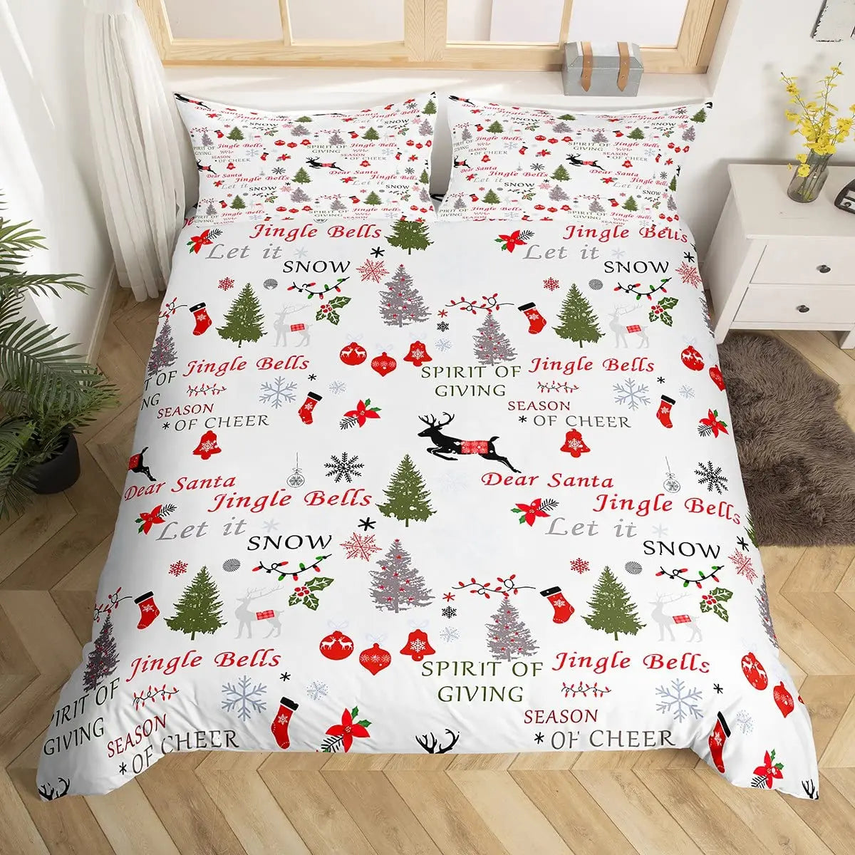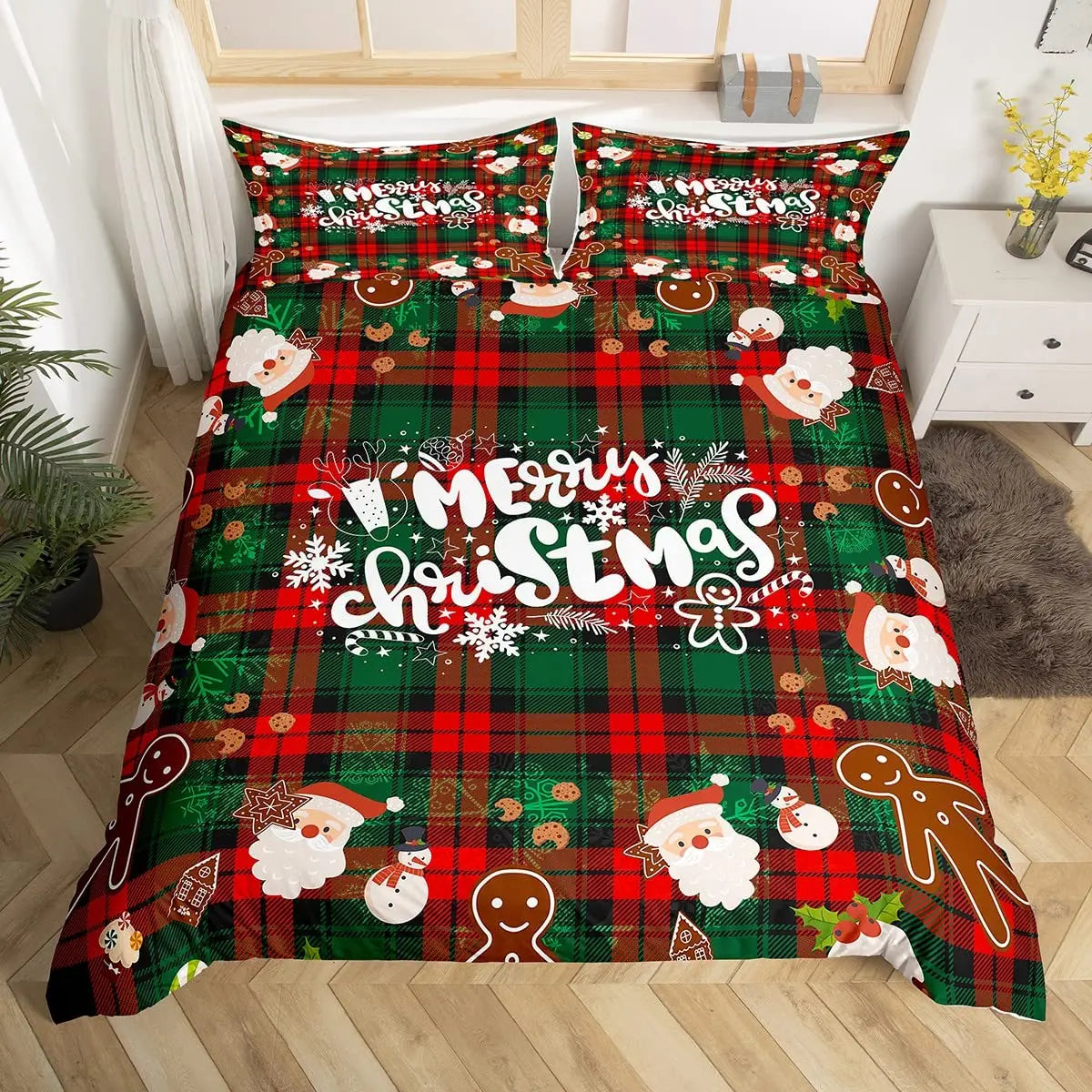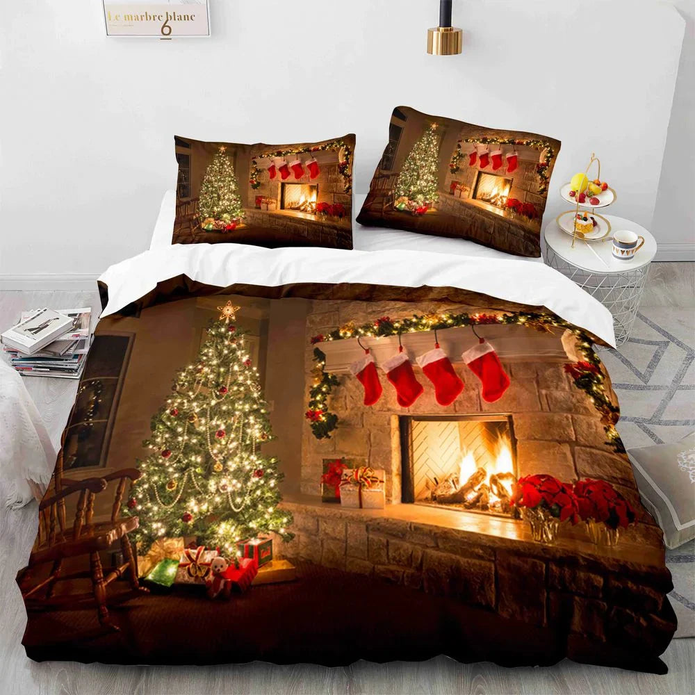 Christmas King Queen Duvet Cover Santa Claus Snowman Bedding Set