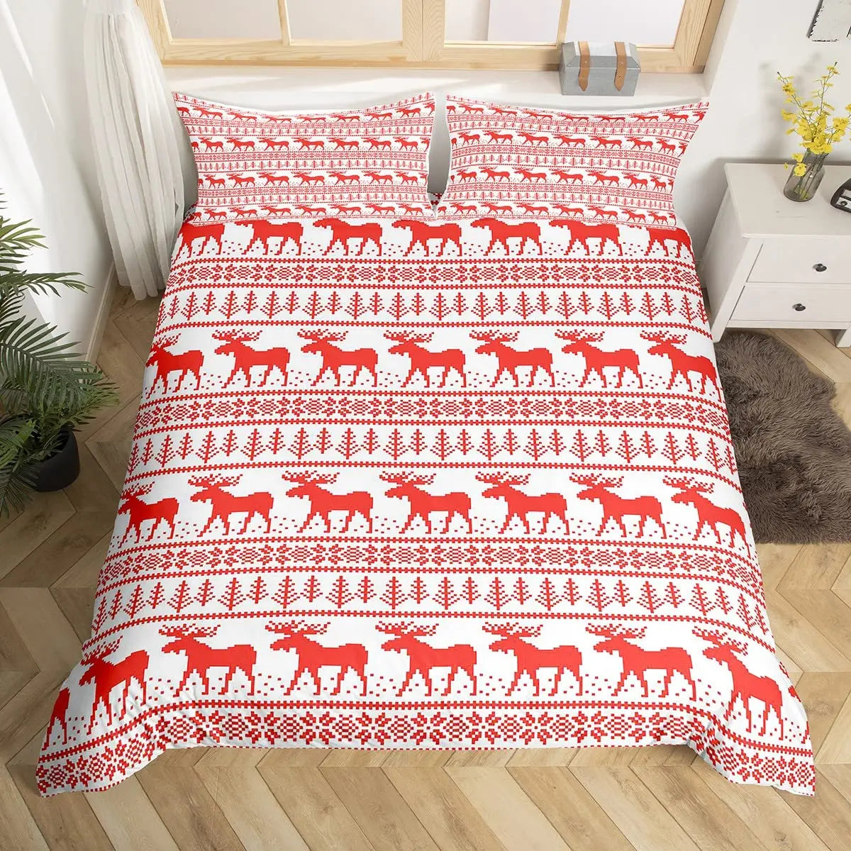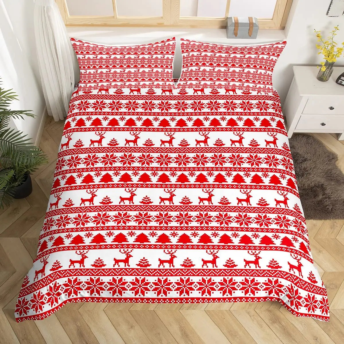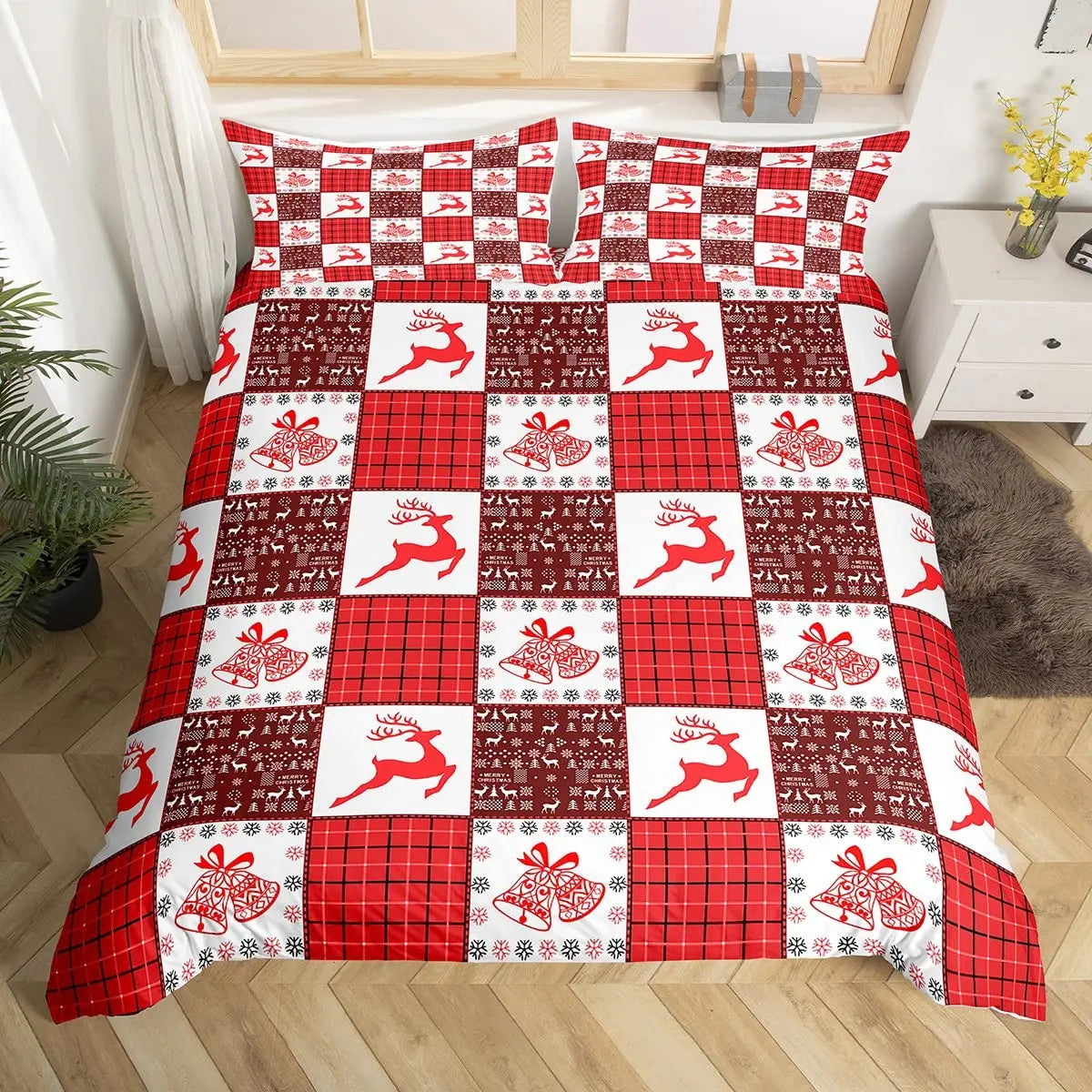 Christmas King Queen Duvet Cover Santa Claus Snowman Bedding Set