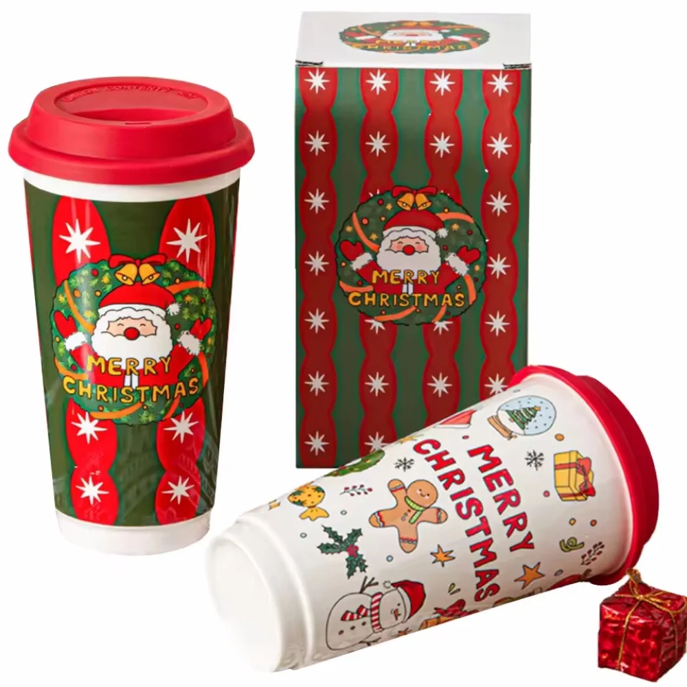 Type: Christmas Ceramic Coffee Mugs with Silicone Lid