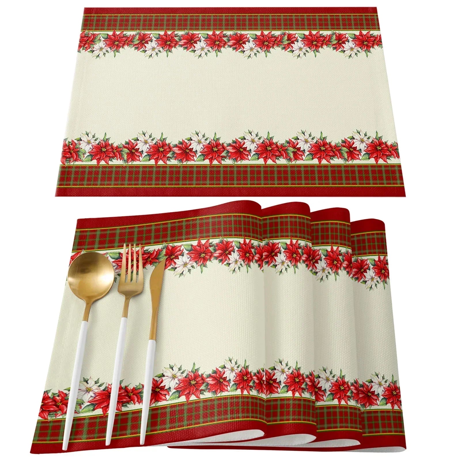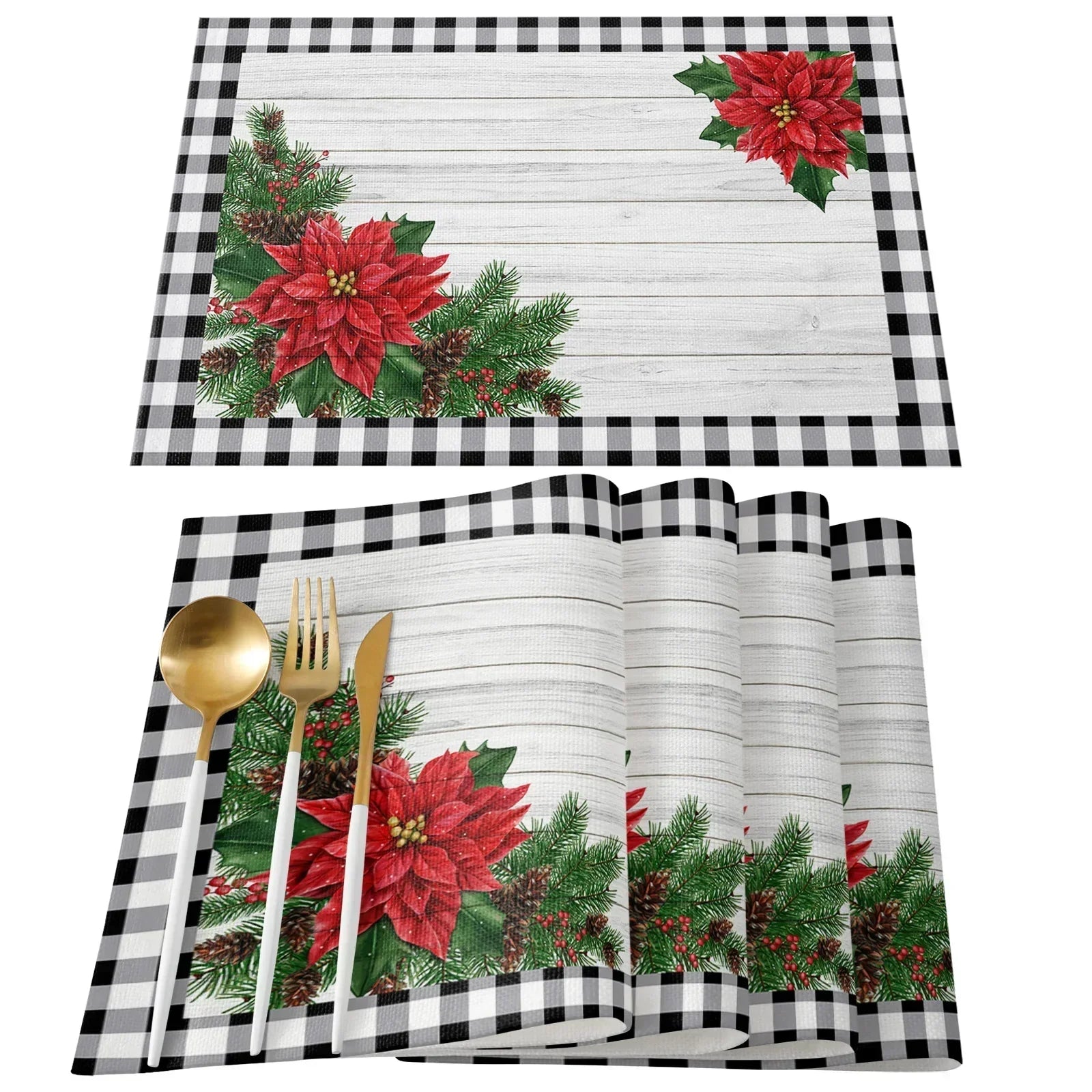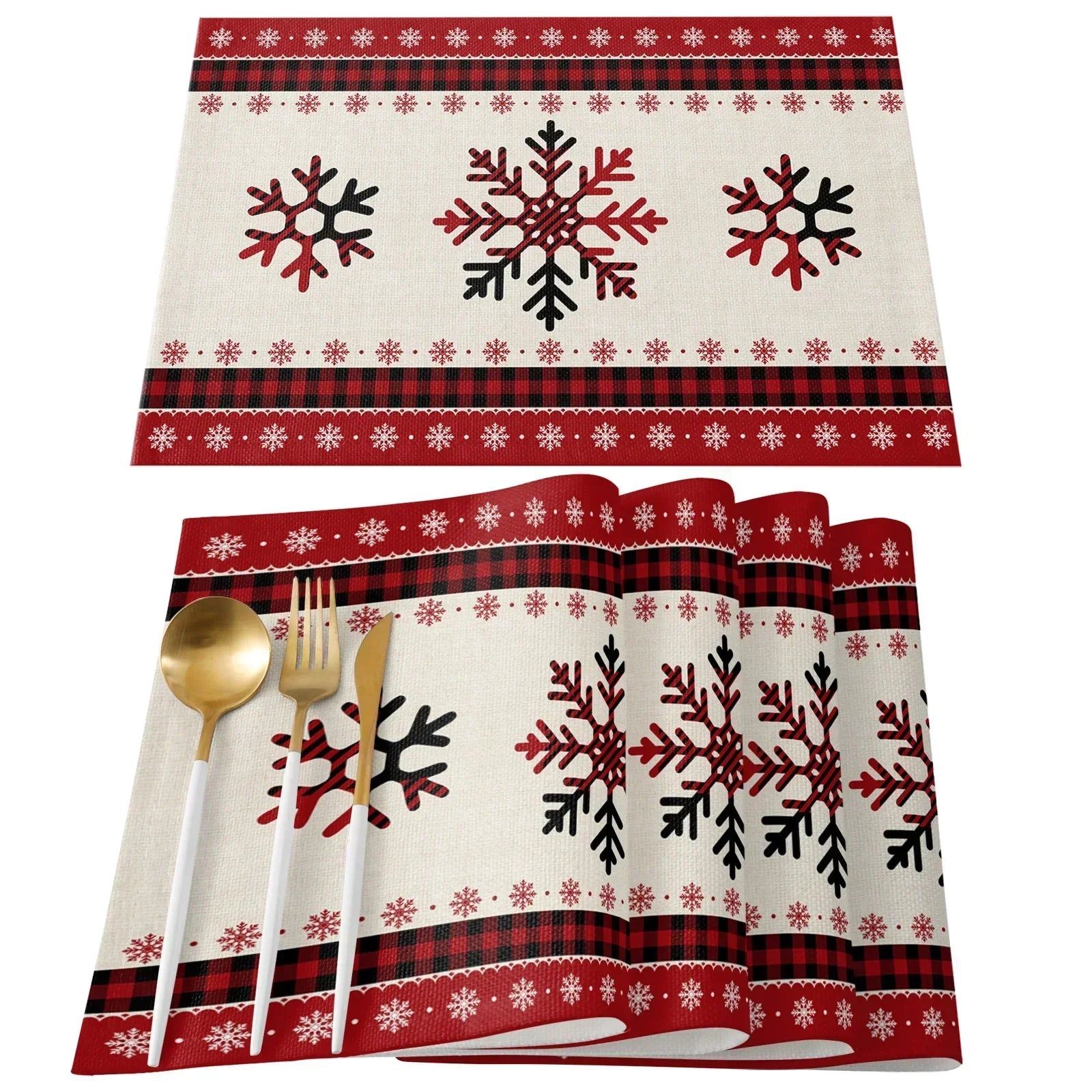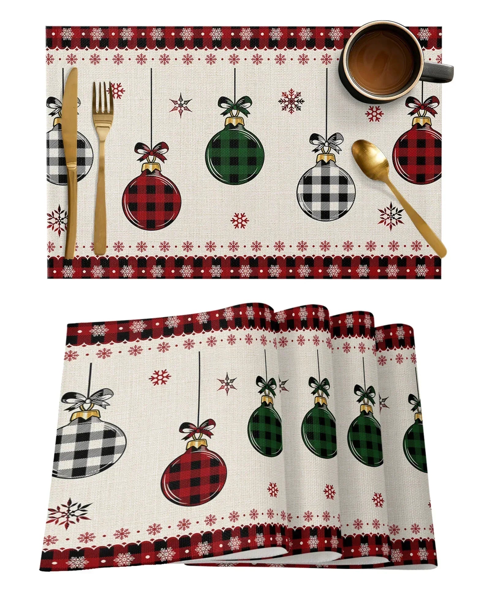 Christmas Red Plaid Placemats Set Kitchen Coffee Accessories
