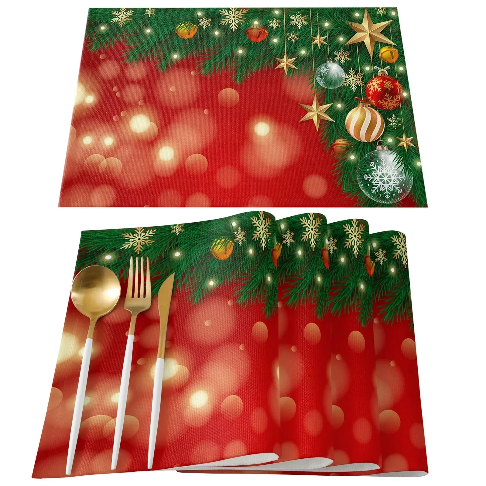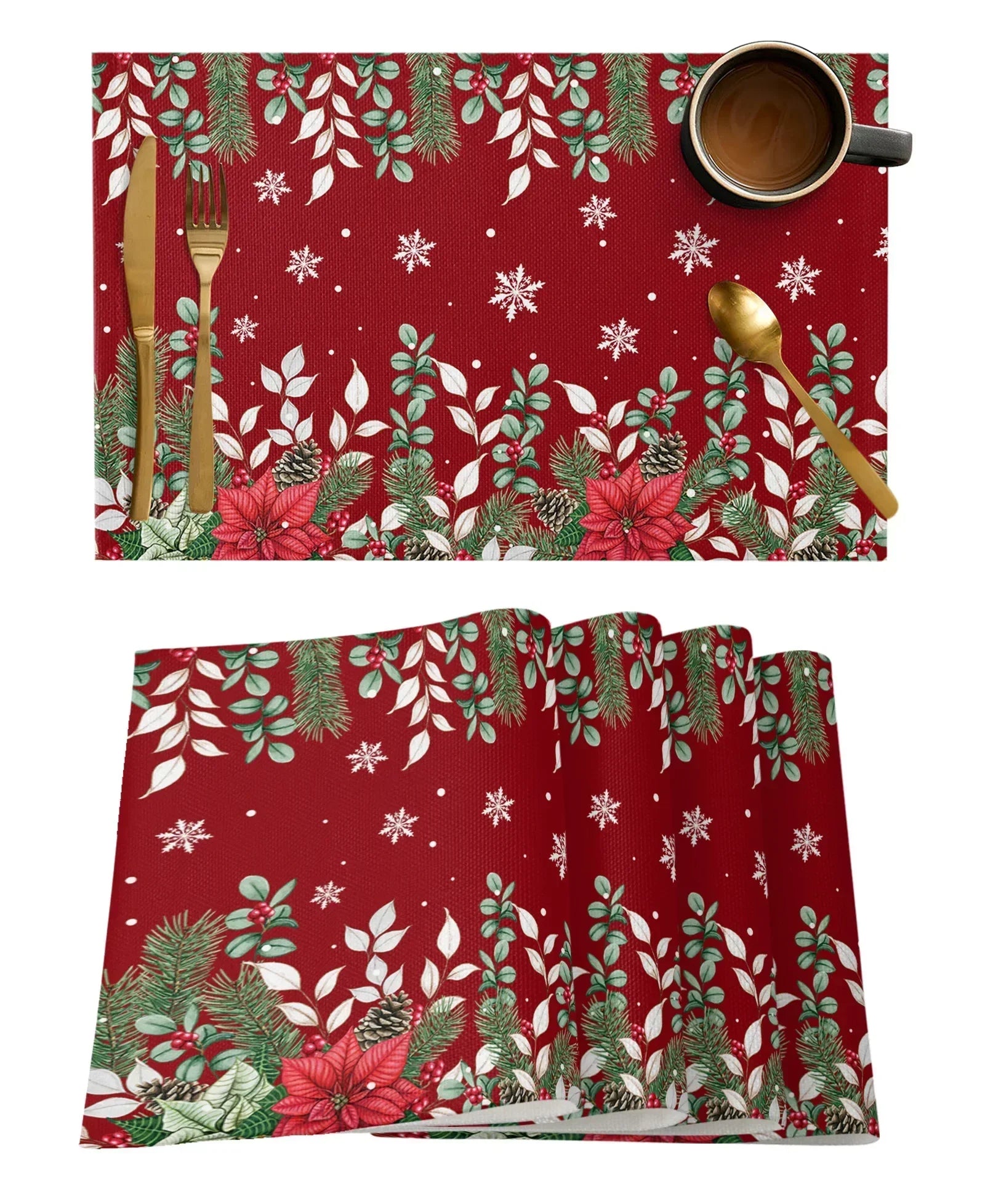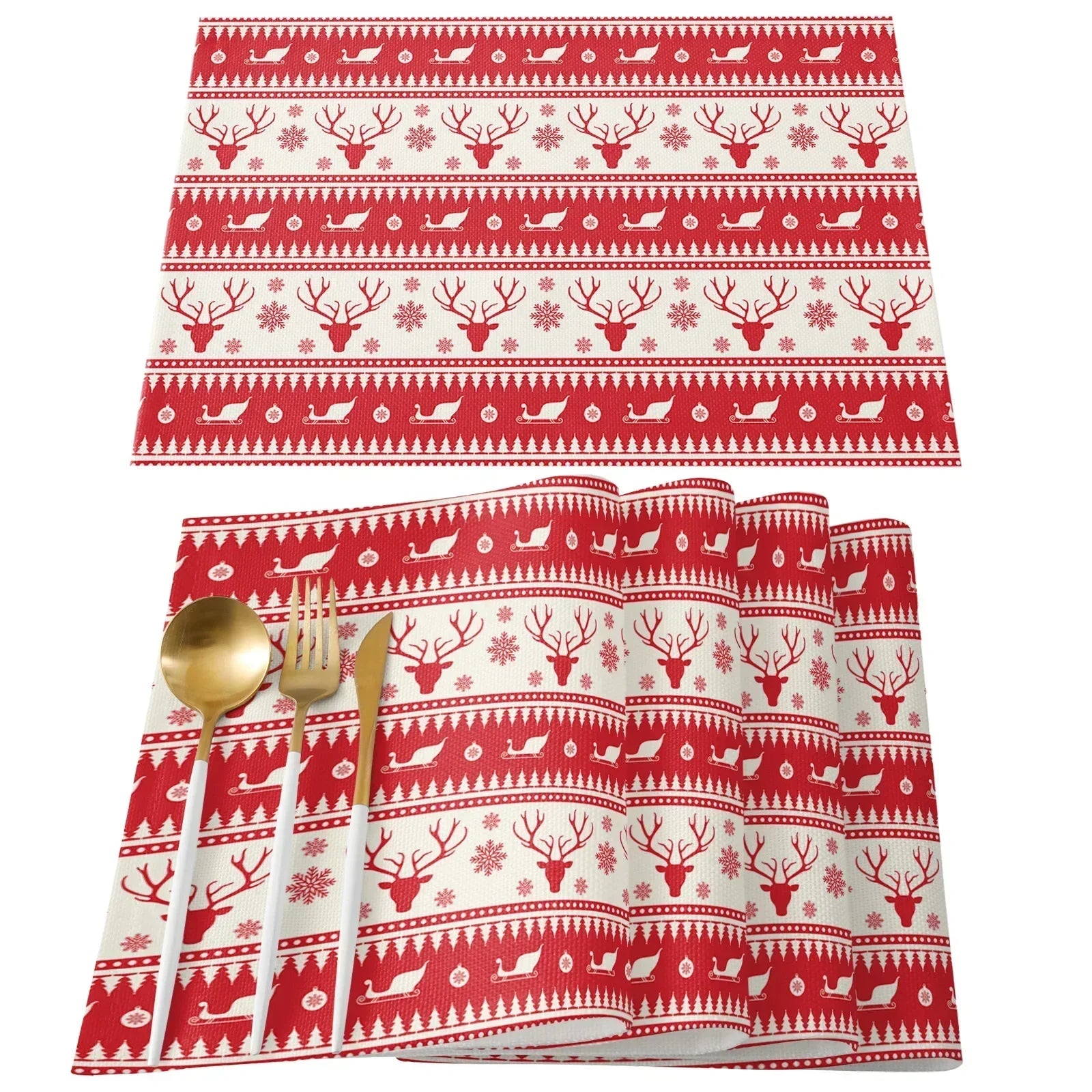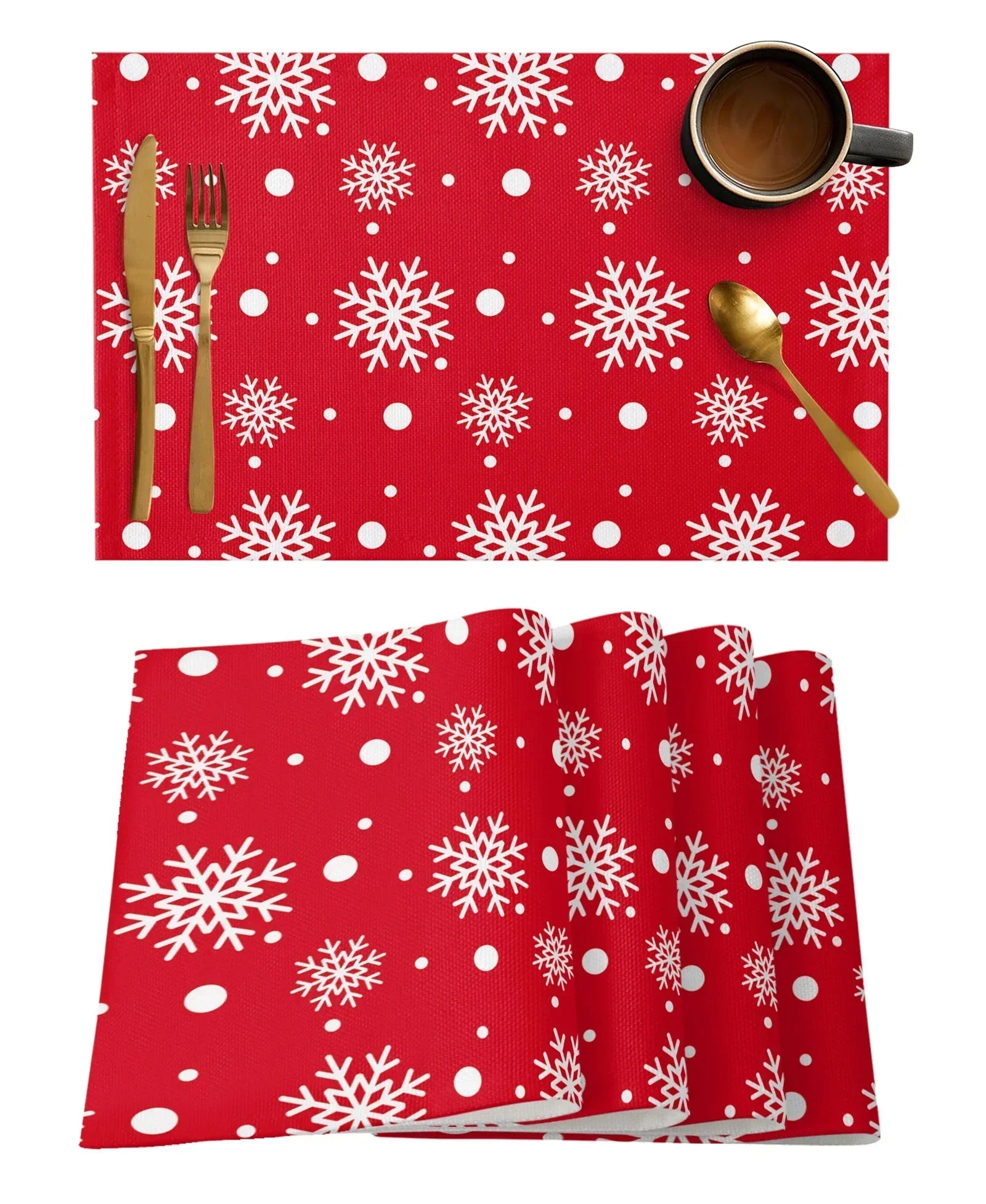 Christmas Red Plaid Placemats Set Kitchen Coffee Accessories