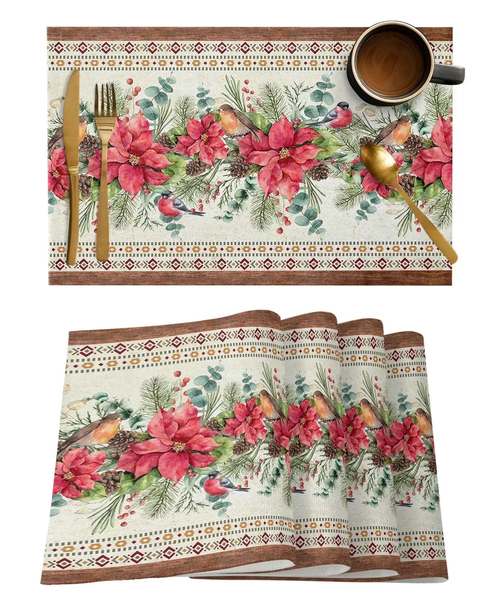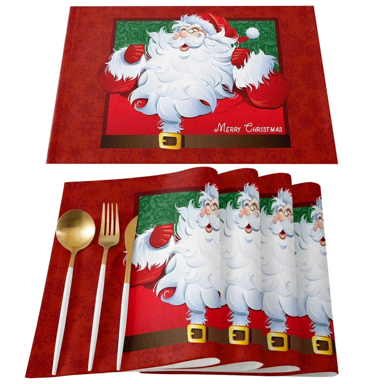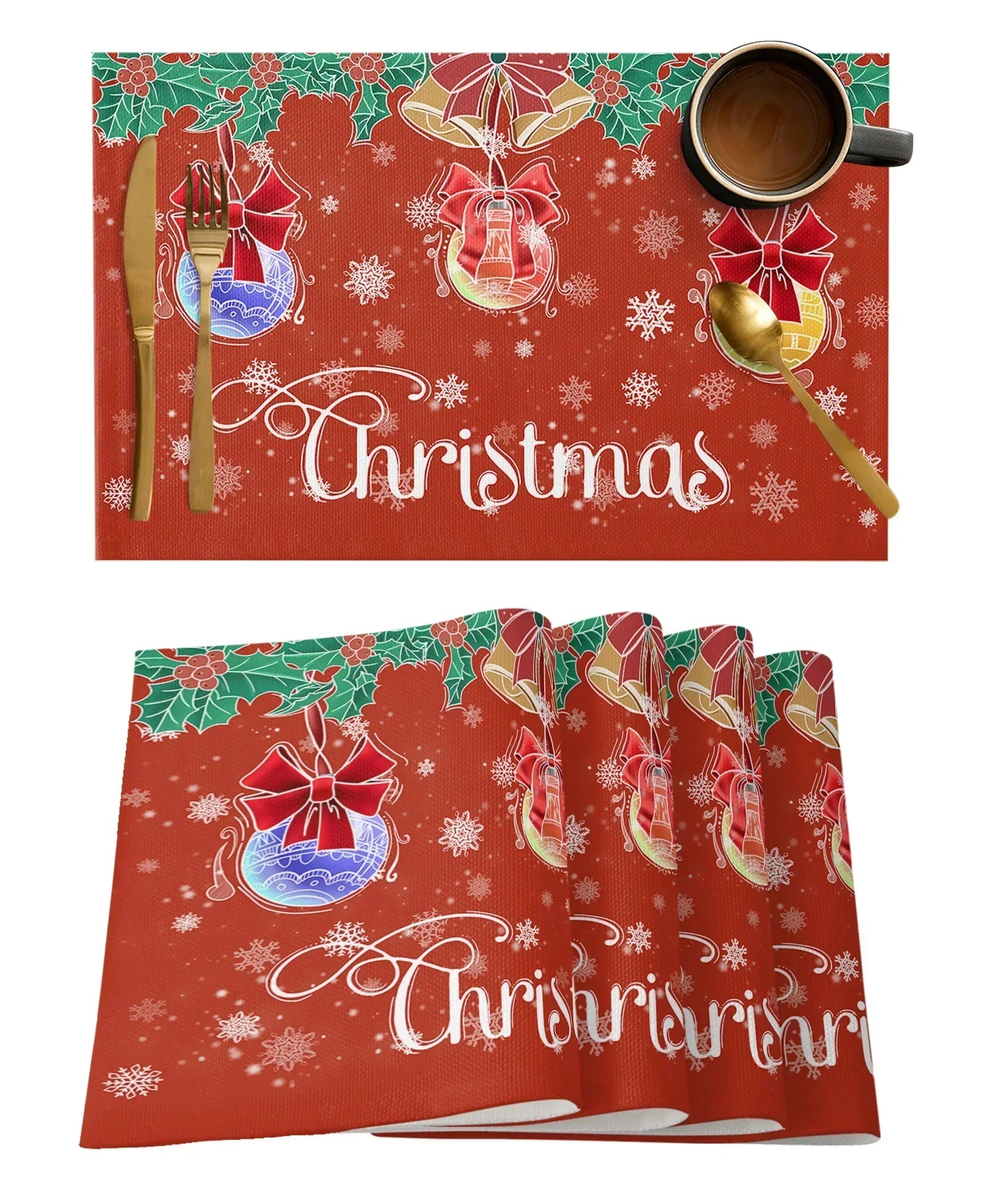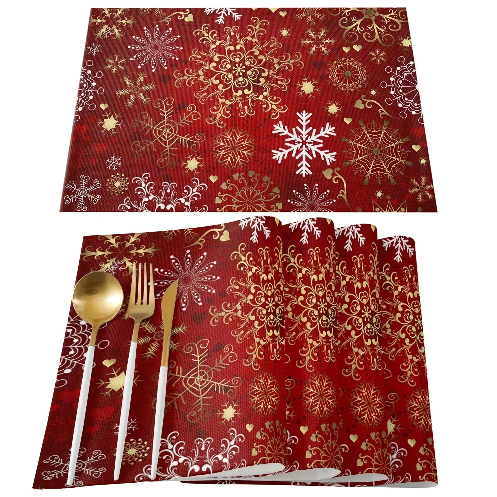 Christmas Red Plaid Placemats Set Kitchen Coffee Accessories