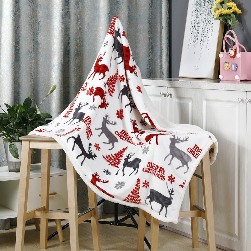 Creative Cartoon Christmas Printing Double-layer Thickened Thermal Flannel Blanket - Red Christmas Style / 127X152CM is backordered and will ship as soon as it is back in stock.