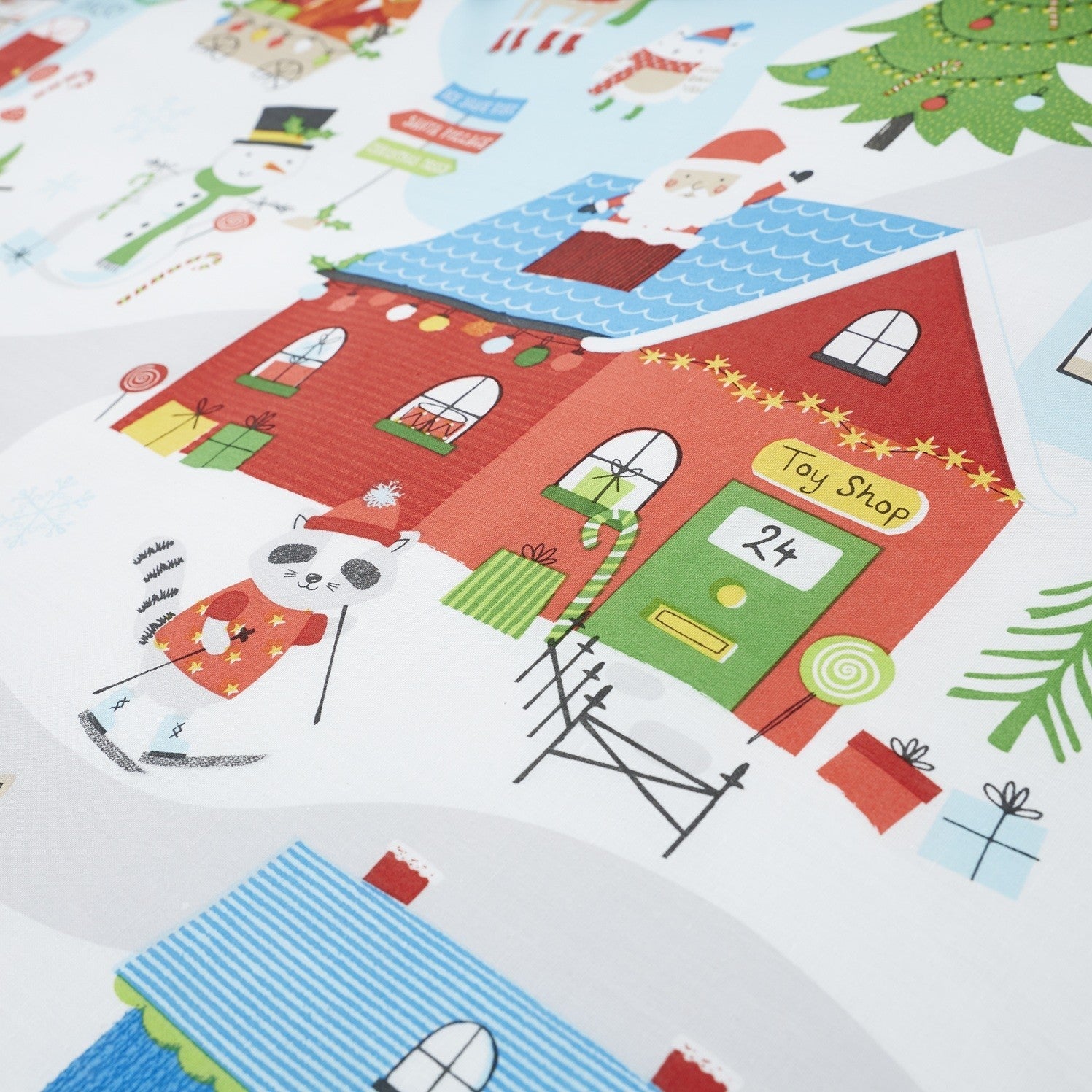 This luxury and reversible duvet cover set christmas village illustration on it. Material: 45% Cotton & 55% Polyester, it is machine washable. This set includes 1 x single duvet cover and 1 x pillowcase, duvet cover size is 135cm x 200cm (53" x 79") (Approx) and pillowcase size is 48cm x 74cm (19" x 29")(Approx).