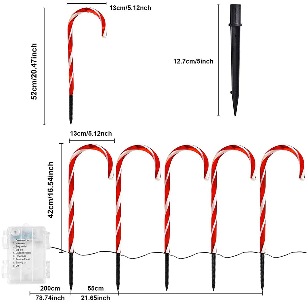 4/5/8/10 LED Christmas Candy Cane Lights Battery Waterproof Outdoor Pathway Marker Stakes String Light Garden Patio Party Decor