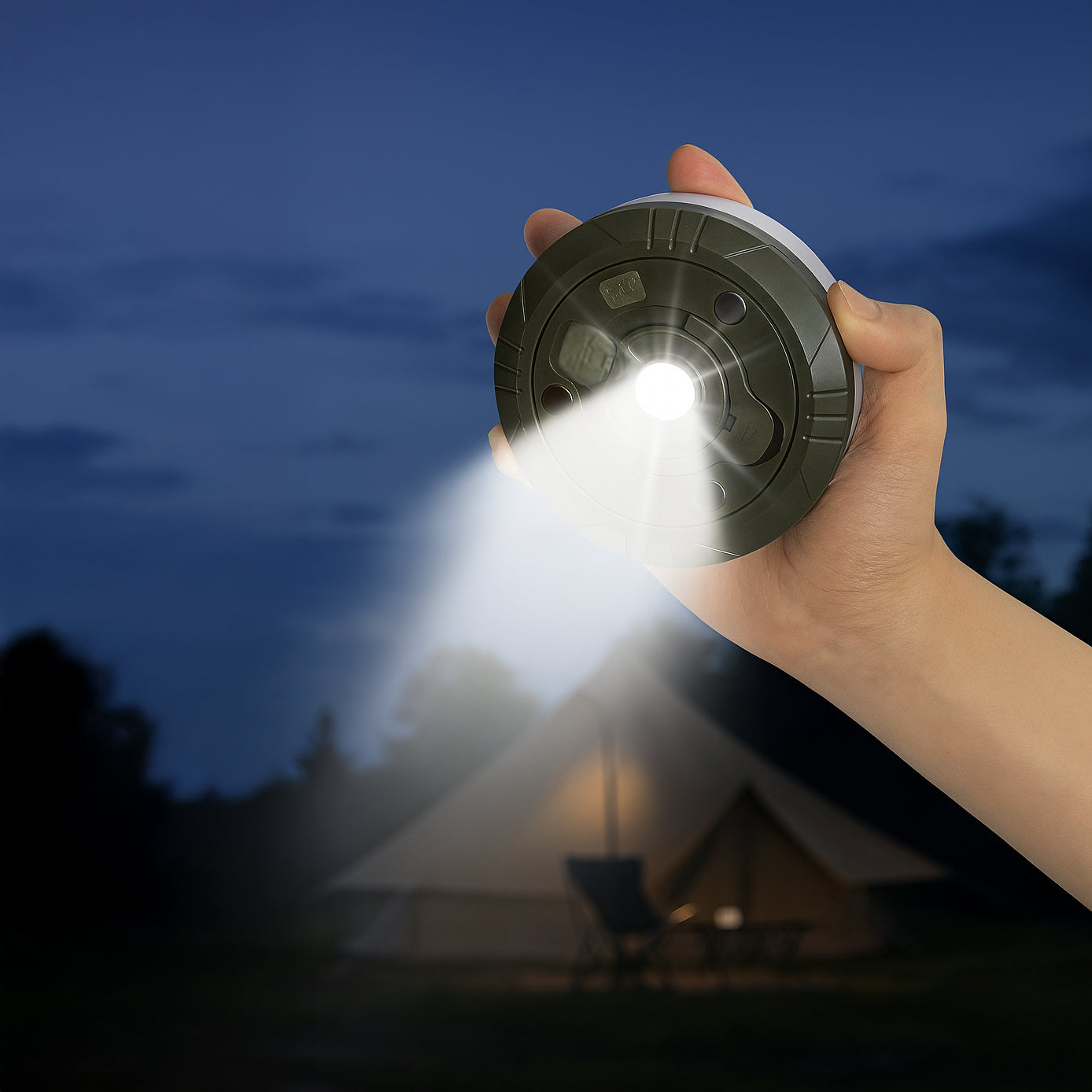 Compact and lightweight at only 210g, this unit is easy to pack and carry for camping, hiking or van life. The foldable 10M string light stores neatly into the base, ensuring quick setup and tidy storage. Rated IP65 waterproof, it is suitable for use in rainy or damp conditions.