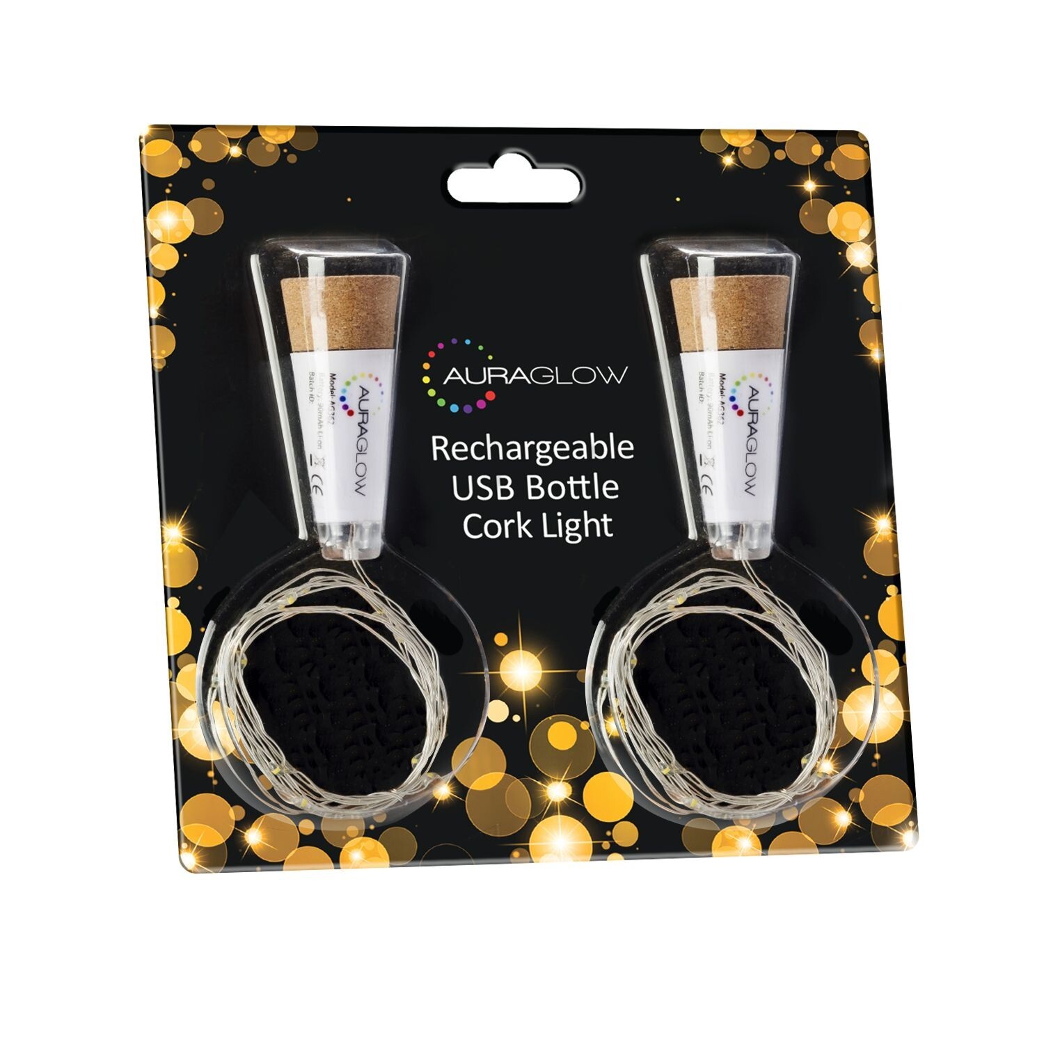 Auraglow Rechargeable USB LED Bottle Cork Wire Fairy String Lights