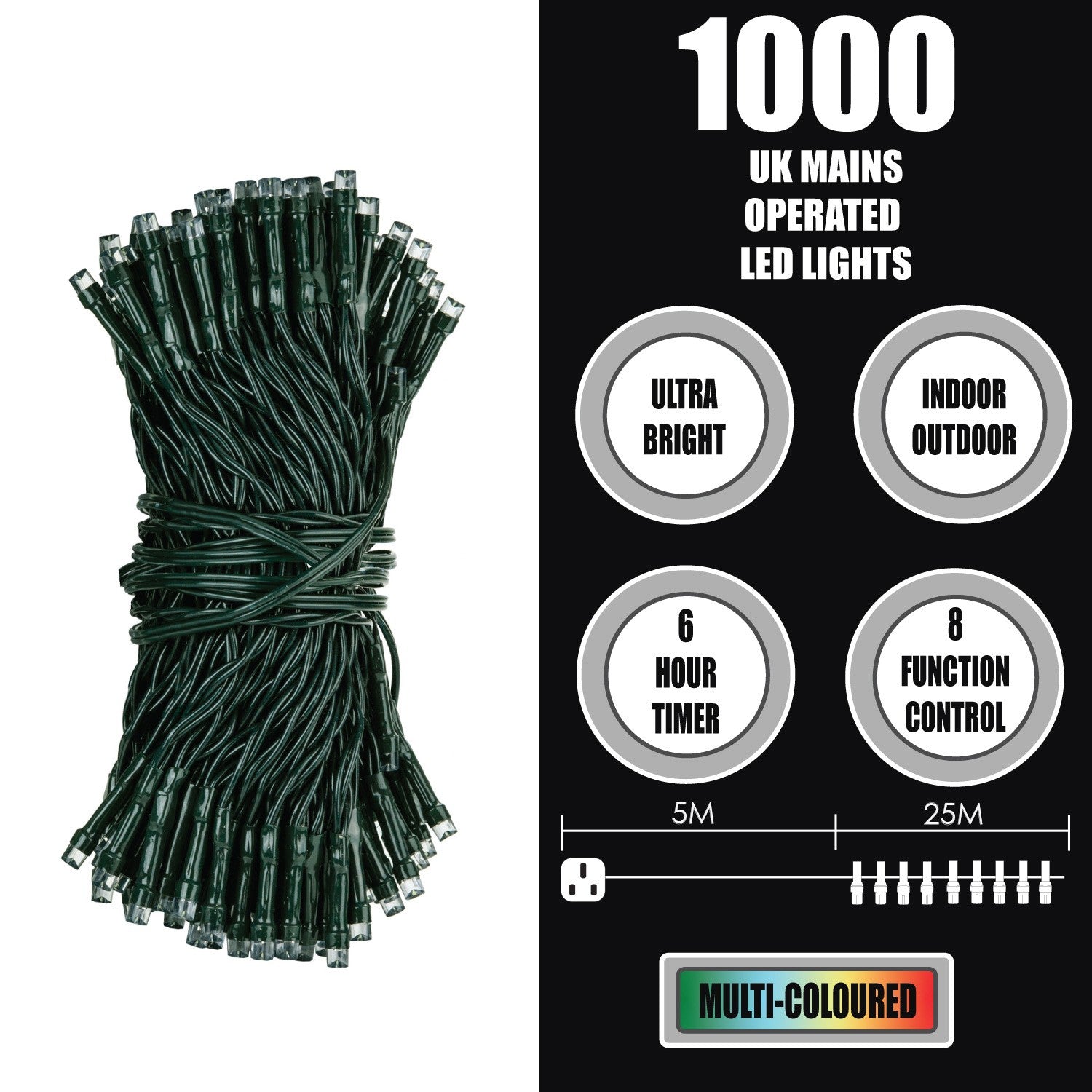 • INDOOR AND OUTDOOR: With 1000 25 meter multicoloured LED bulbs , these mains operated, low voltage Christmas lights are the perfect purchase to create a Christmasy feel. They can be used indoors or outdoors depending on your preference.