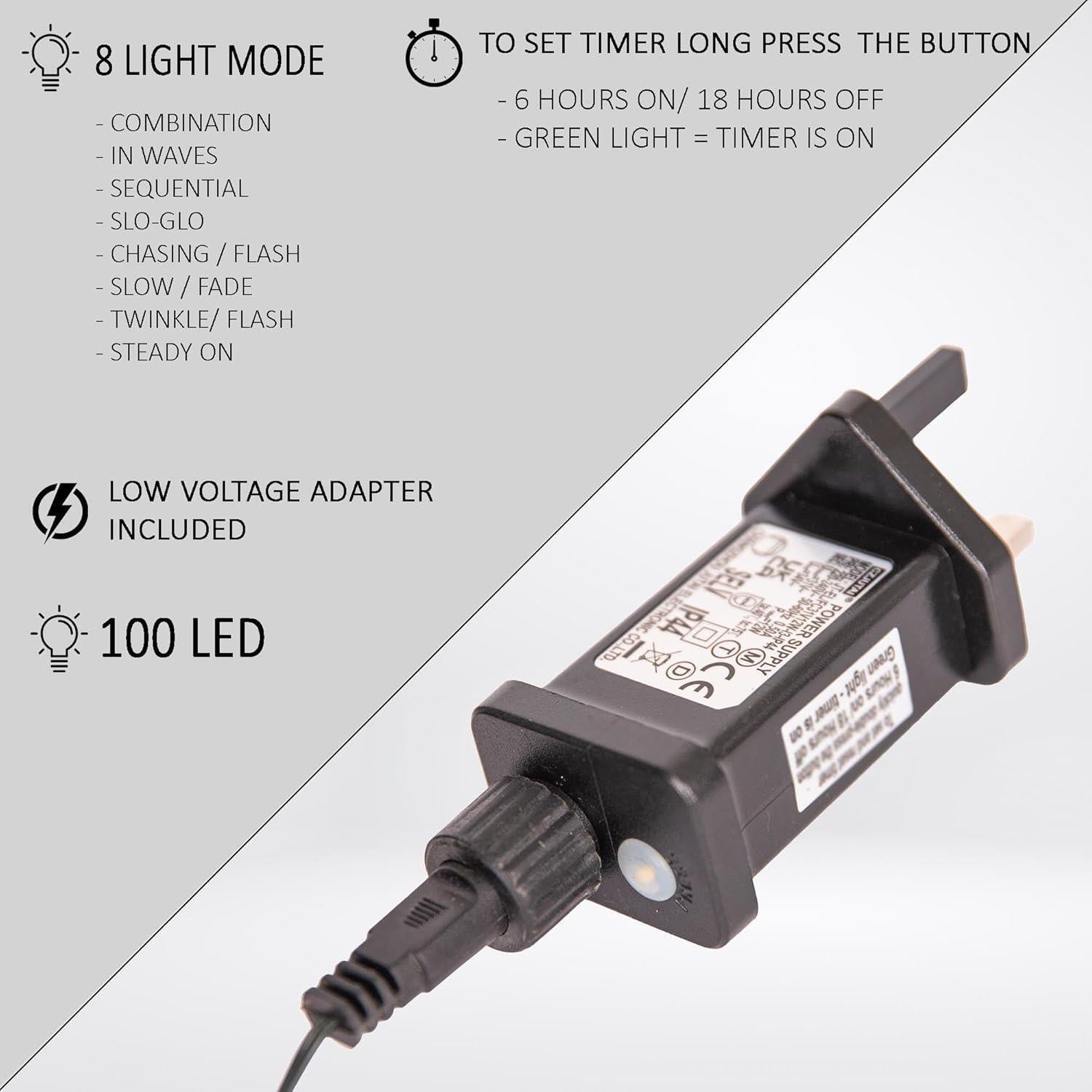 • 💡 🎅【ENERGY SAVING & TIMER】: Energy saving low consumption. These lights have a timer function, 6 hours ON and 18 hours OFF automatically. Please press the button on the plug for a few seconds till it turns green to turn on the timer and vice versa.