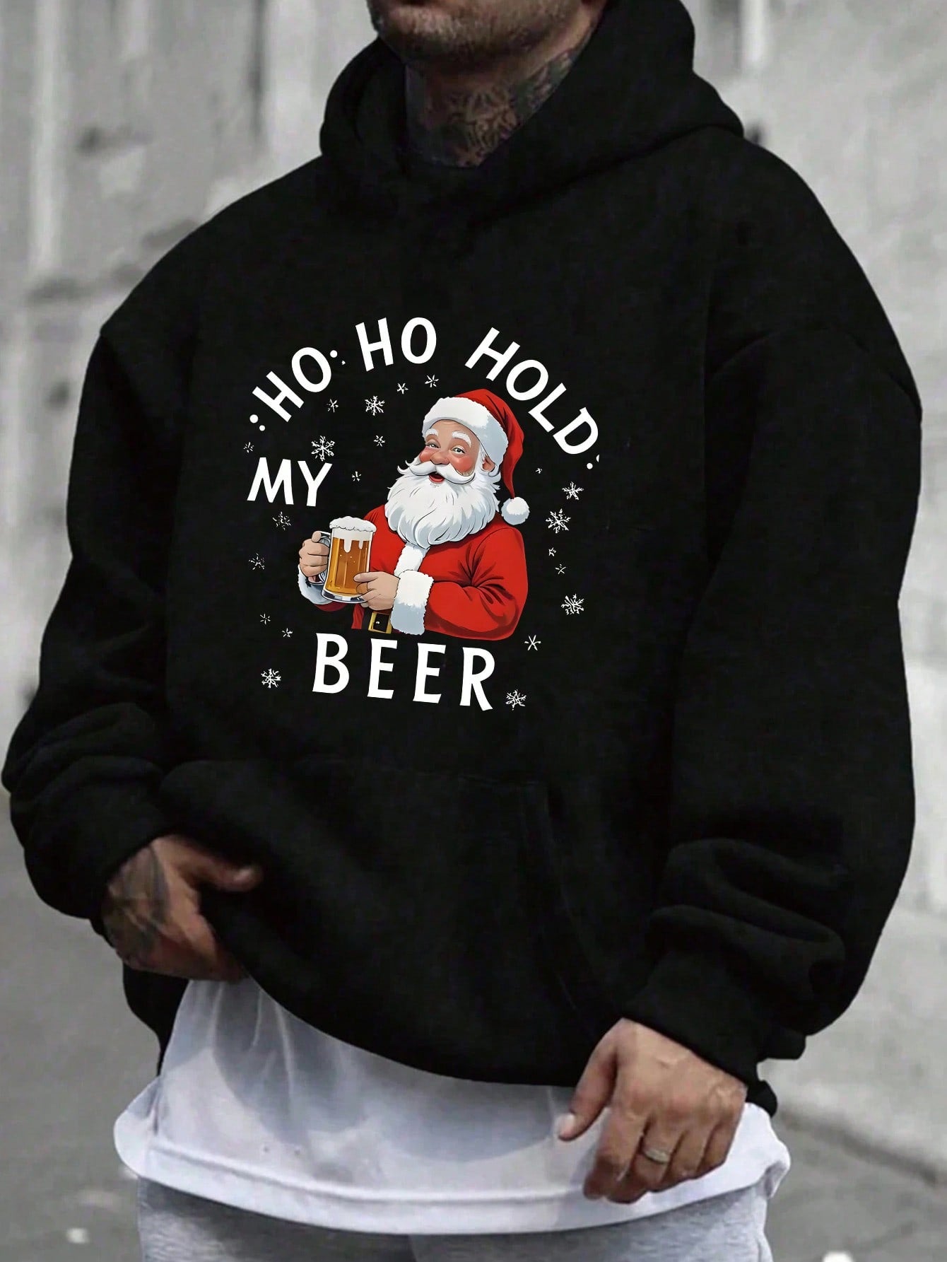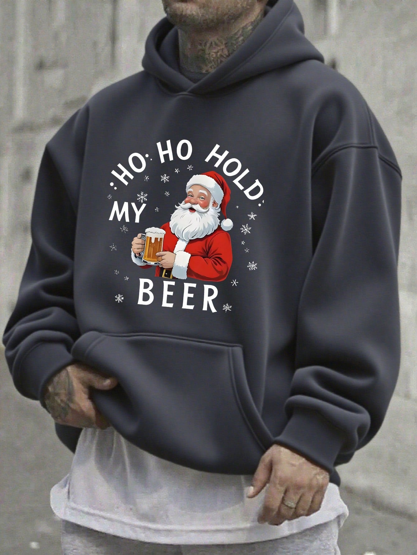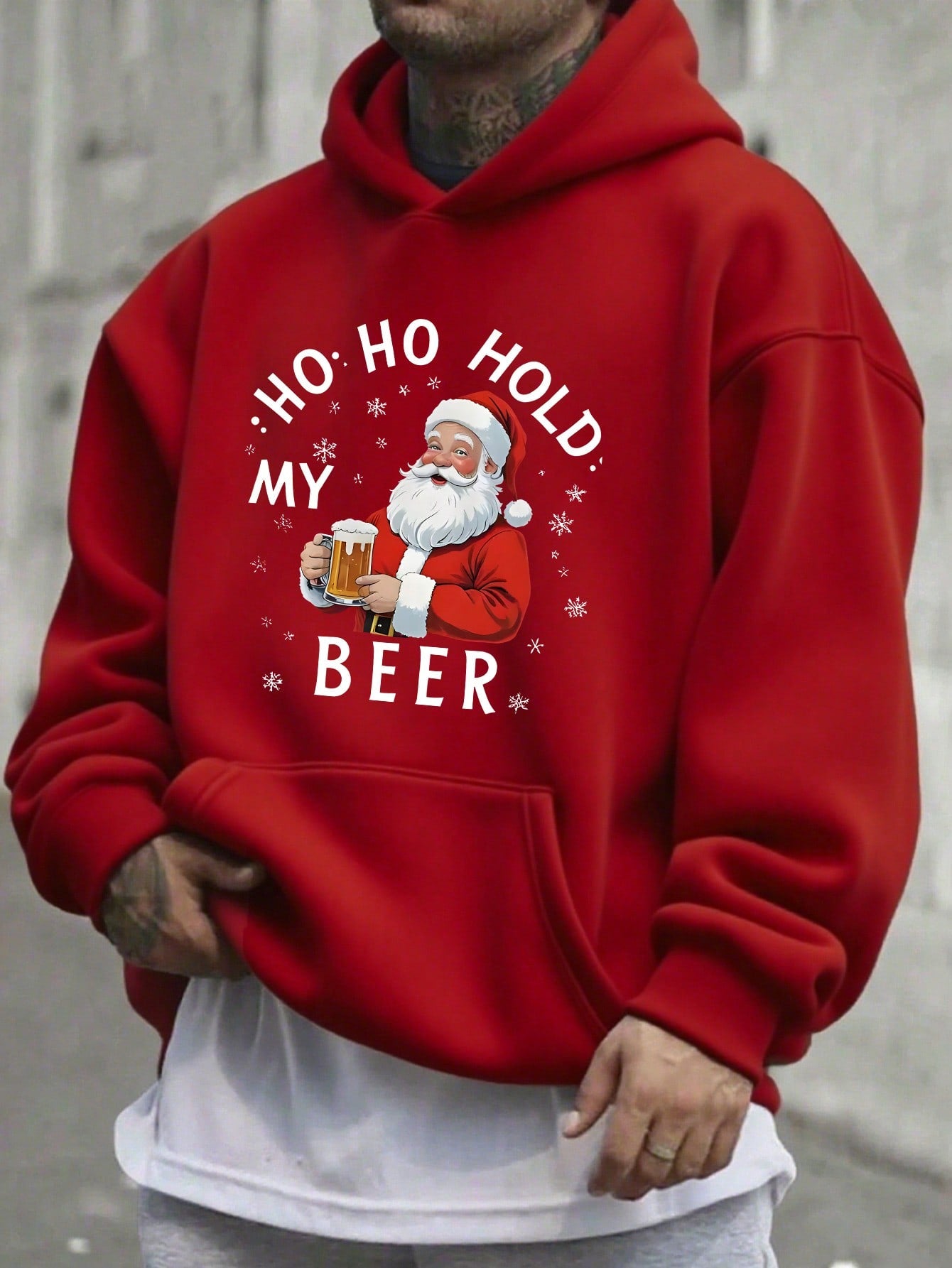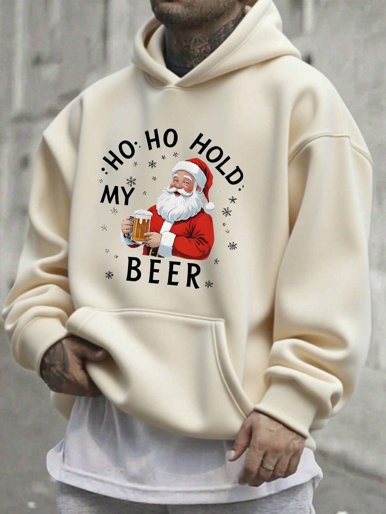 Christmas pullover hoodie Hat And A Printed Image Of Santa Claus
