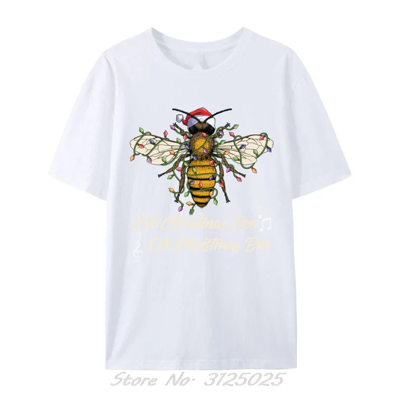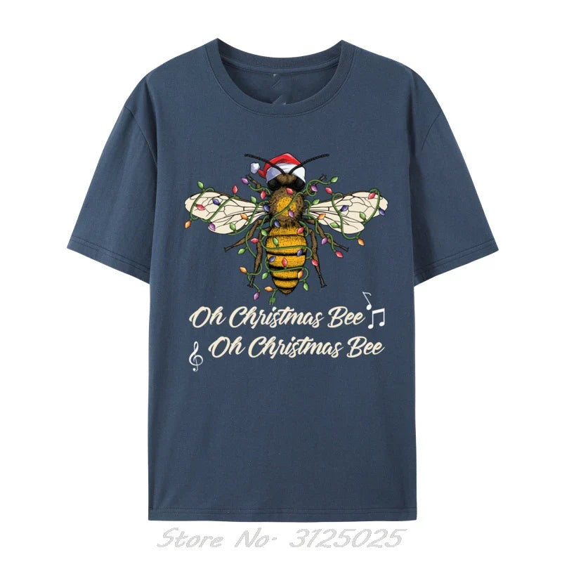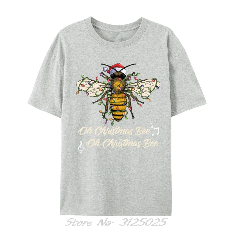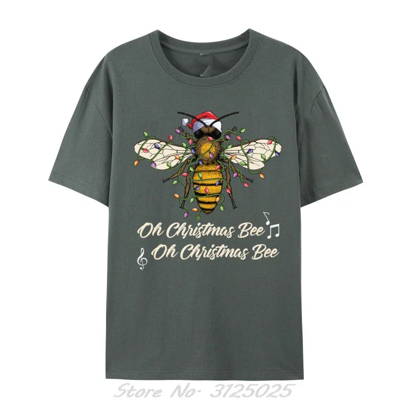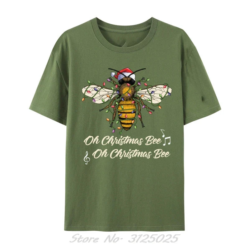 Funny Oh Christmas Bee Xmas Pajamas Bee Santa Hat Lights T-Shirts Oversized Unisex T Shirt Cotton Men Tops Tees Streetwear - army green / S is backordered and will ship as soon as it is back in stock.