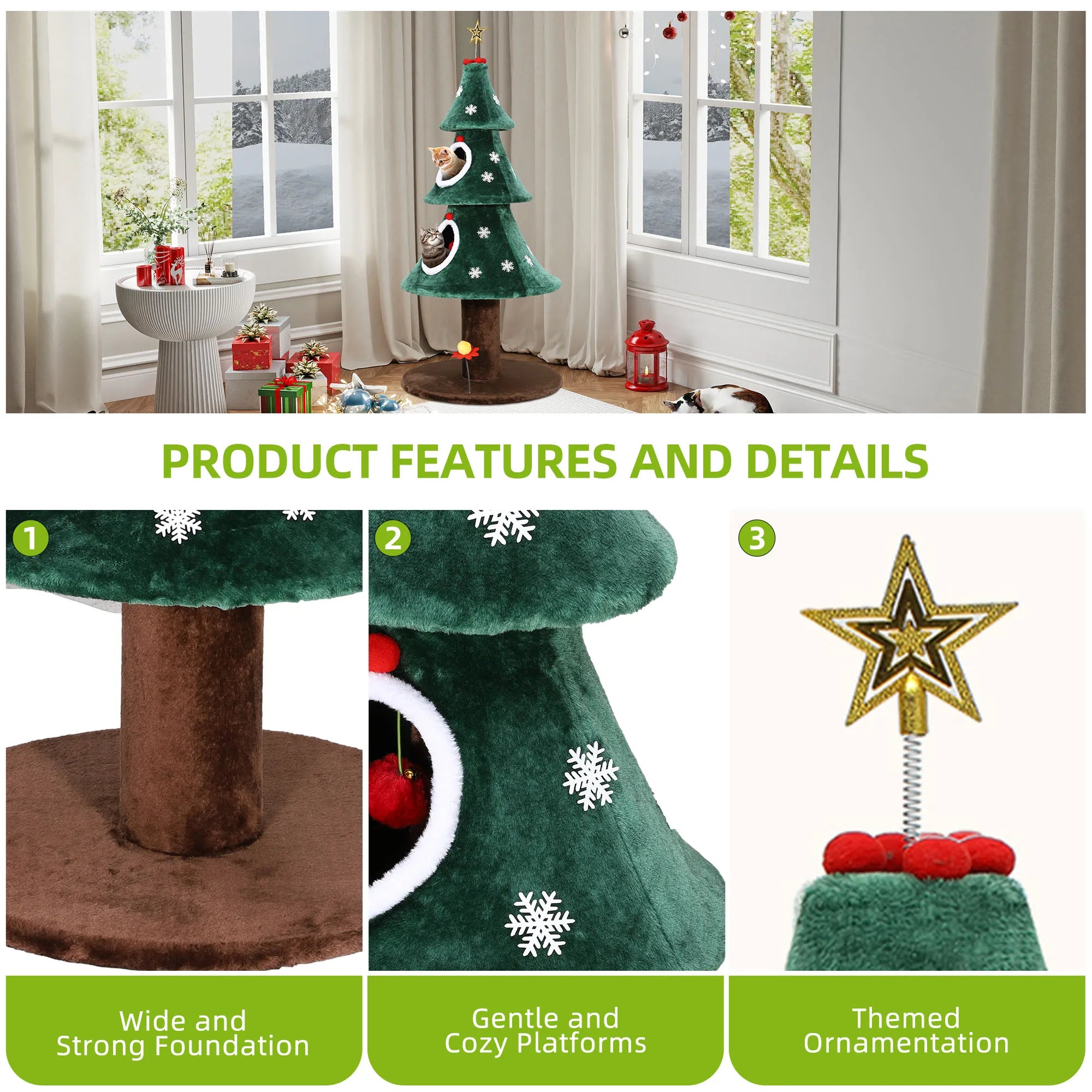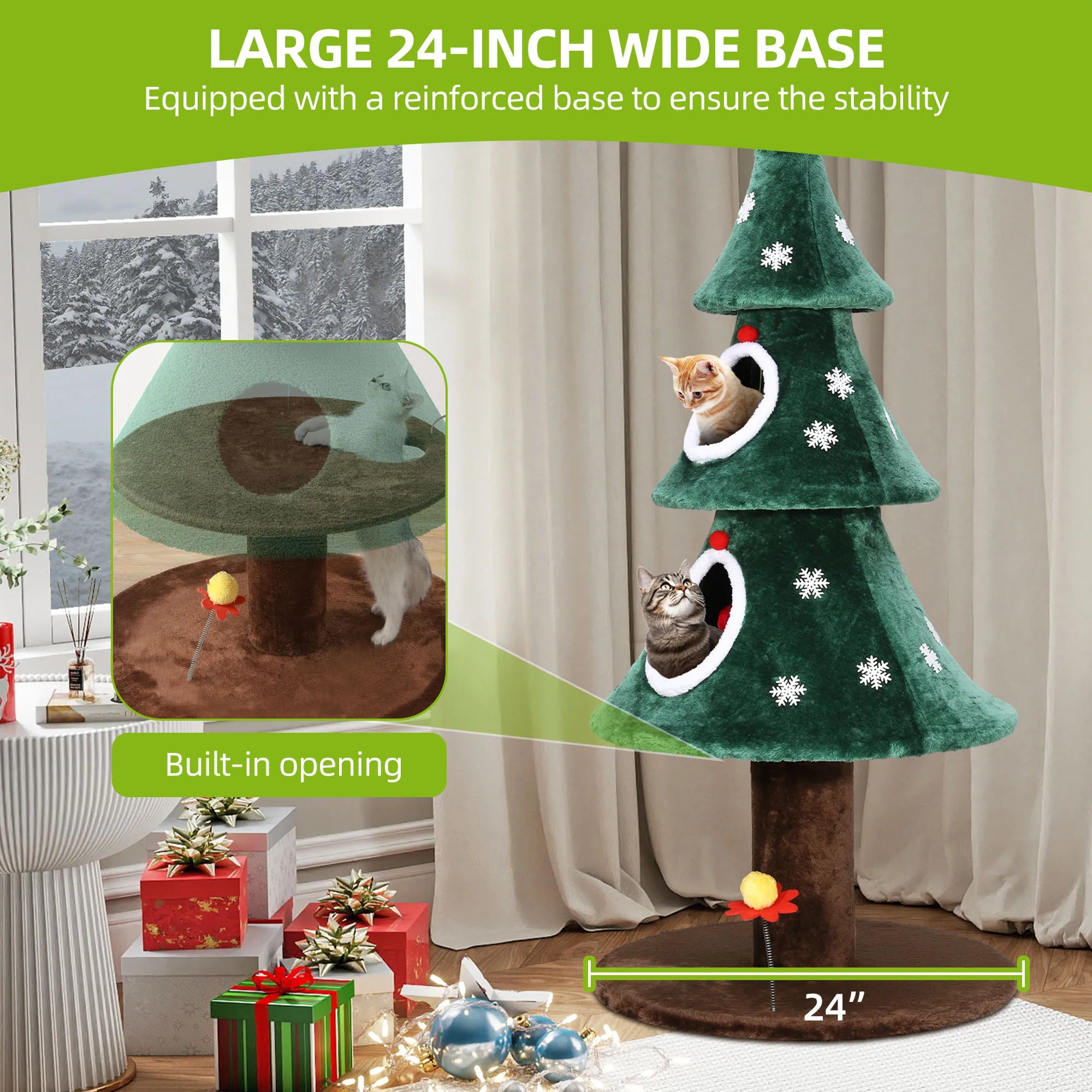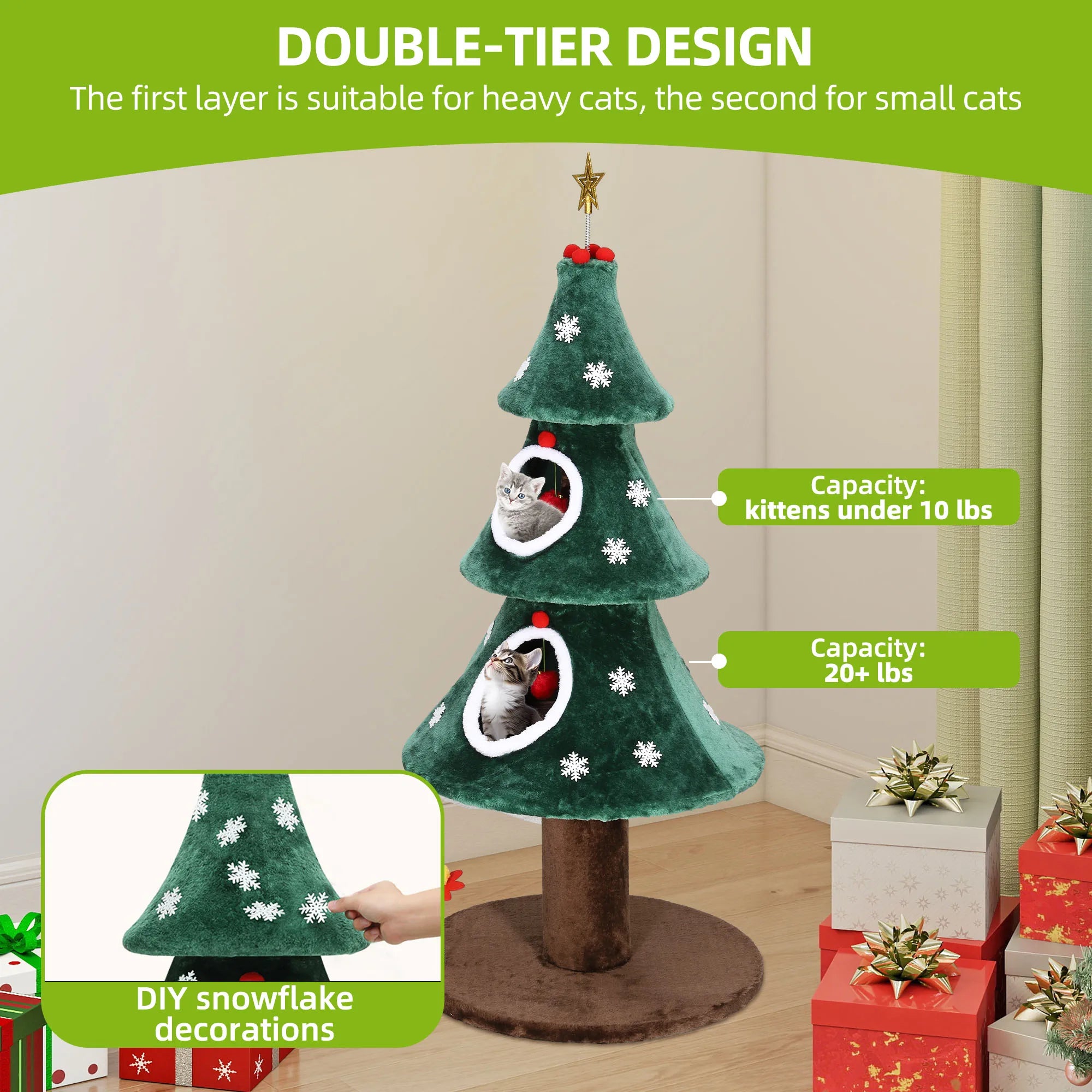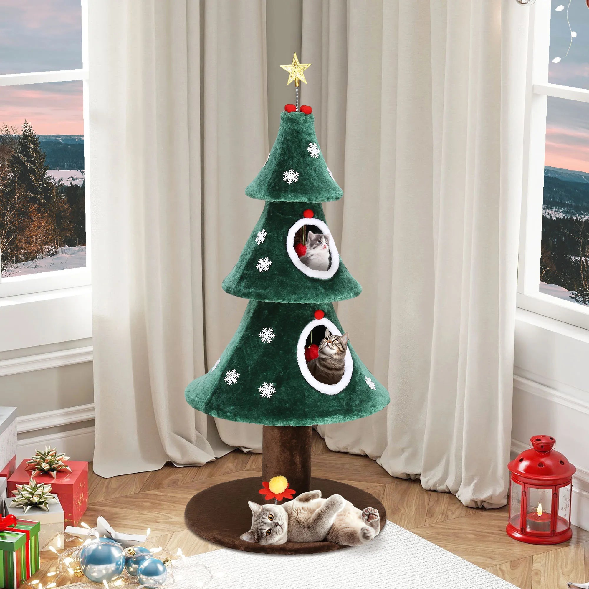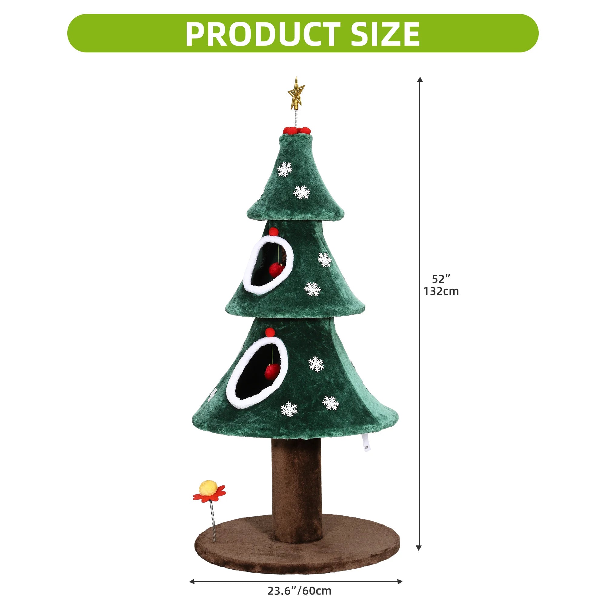Balconera 132cm Christmas Cat Tree - Double-Layer House with Toys for Indoor Cats