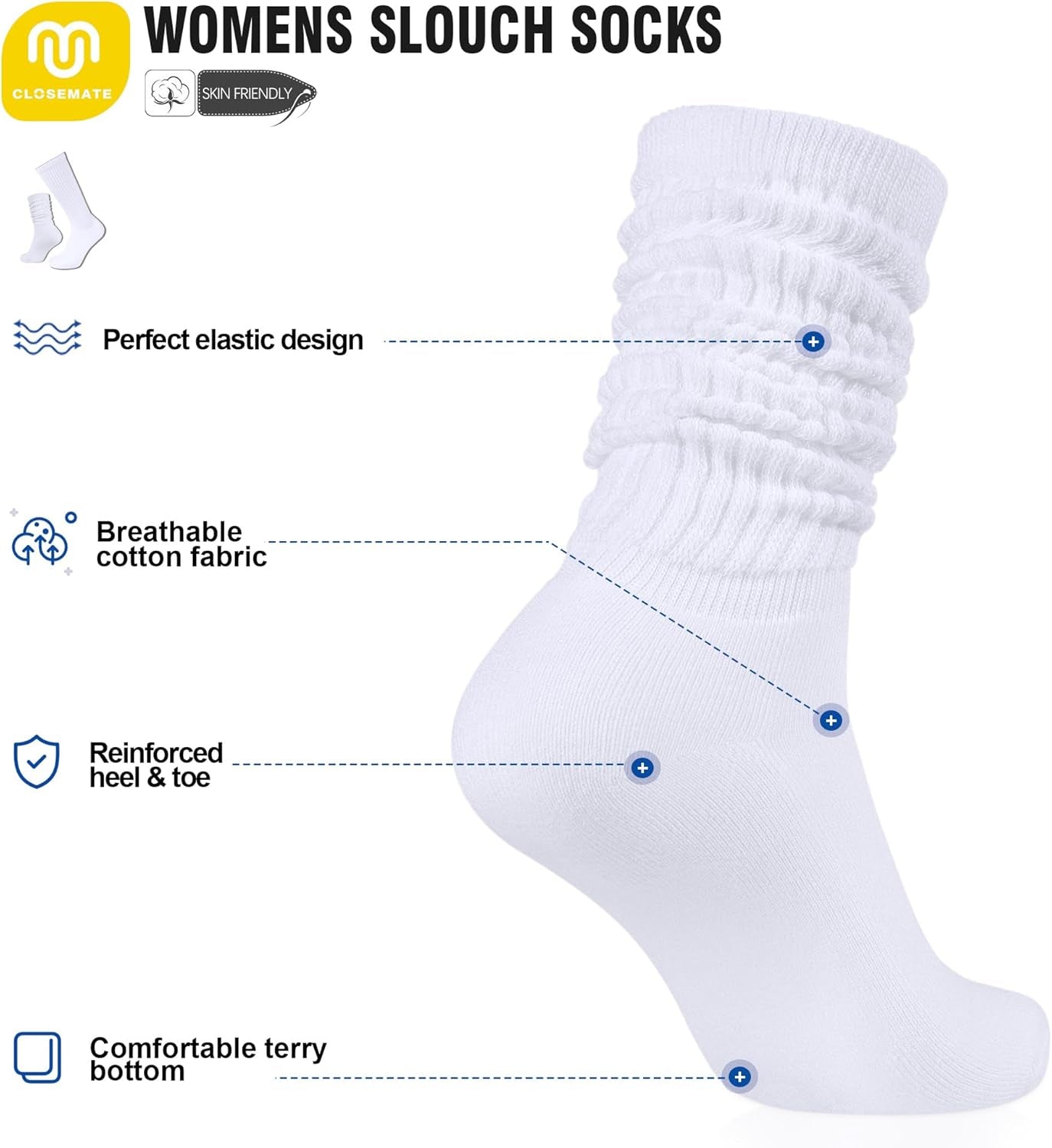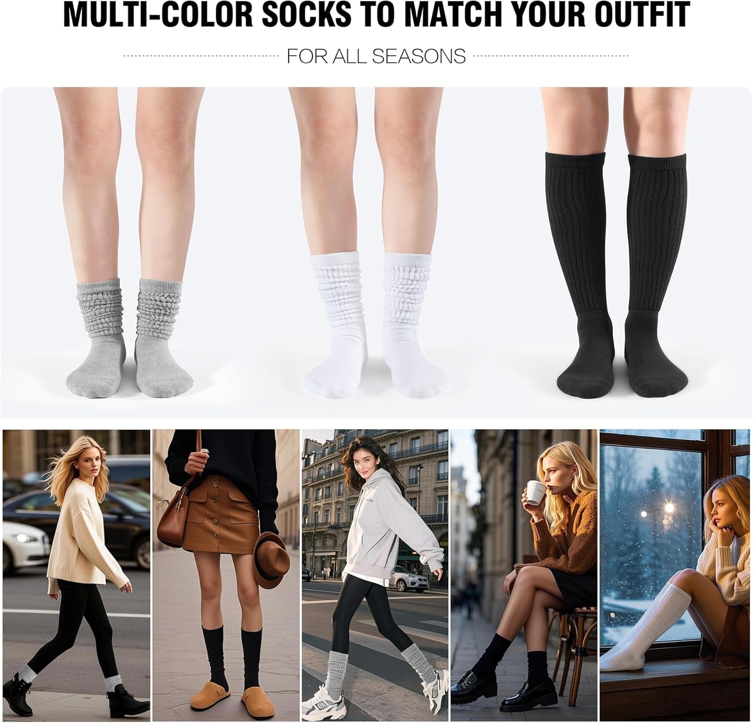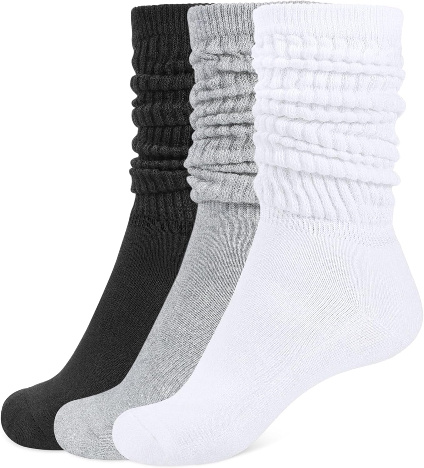 Womens Calf Socks Slouch Socks Extra Long Knee High Scrunch Stacked Sock Cotton Boot Socks for Women Girls One Size - 4-8 / 1Black 1White 1Grey is backordered and will ship as soon as it is back in stock.
