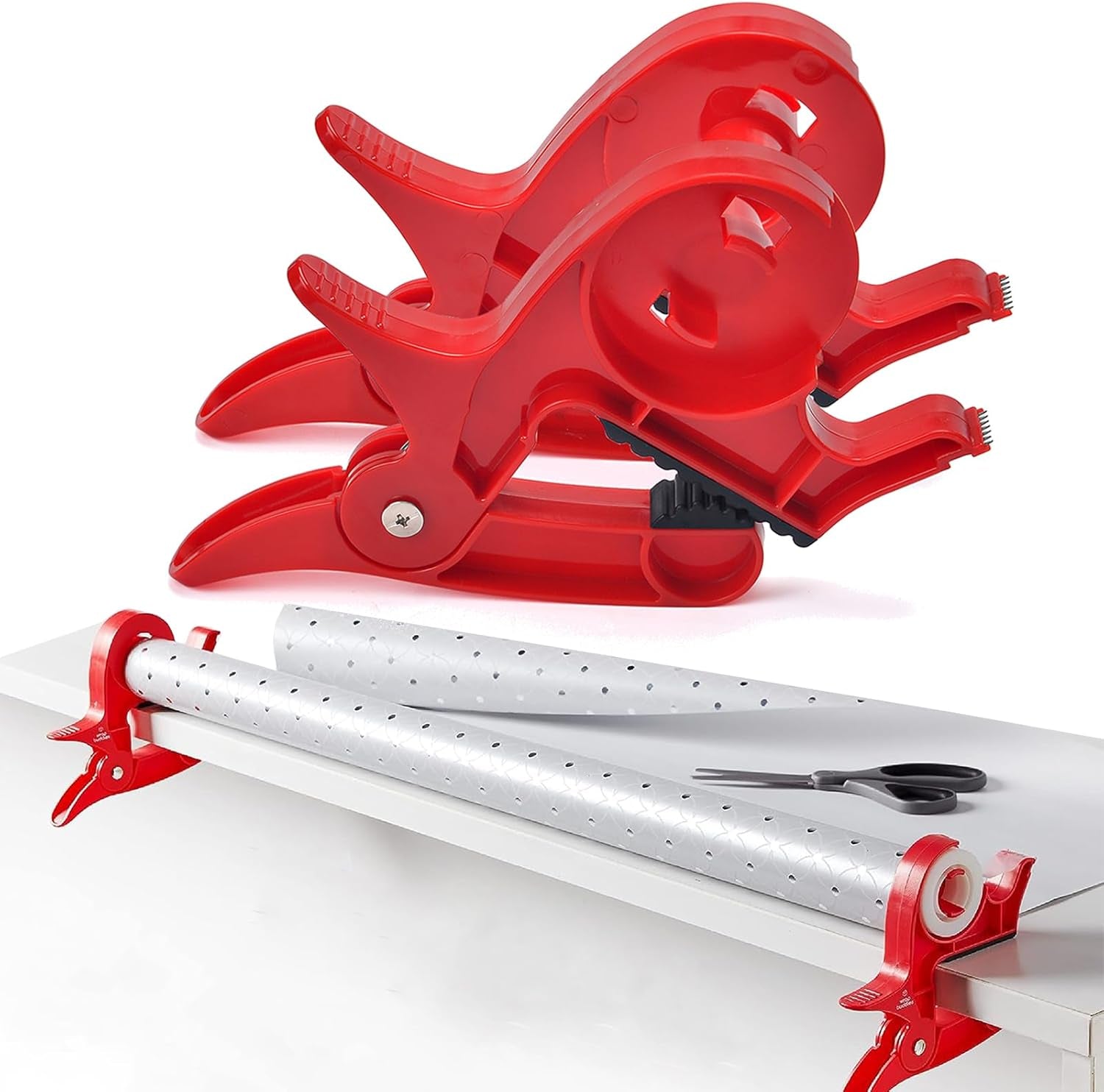 • Tabletop Gift Wrapping Tool - Reduce frustration this holiday season with wrapping paper clamps - a pair of gift wrapping clamps with tape dispensers that keep all of your gift wrapping supplies within reach.